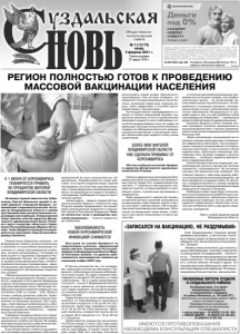 Газета основана 21 марта 1918 г. № 7 (12172) среда, 3 февраля 2021 г. Общественно политическая газета Реклама К 1 ИЮНЯ ОТ КОРОНАВИРУСА ПЛАНИРУЕТСЯ ПРИВИТЬ 60 ПРОЦЕНТОВ ЖИТЕЛЕЙ ВЛАДИМИРСКОЙ ОБЛАСТИ 28 января первый заместитель Губернатора Сергей Шевченко провёл в онлайн-формате очередной брифинг, посвящённый эпидемиологической ситуации во Владимирской области и мерам противодействия распространению коронавирусной инфекции. В мероприятии также приняли участие директор Департамента здравоохранения Елена Утемова и пресс-секретарь областного Управления Роспотребнадзора Марина Колтунова. Такие брифинги проводятся еженедельно по поручению главы региона Владимира Сипягина. Первый вице-губернатор напомнил, что Владимирская область активно включилась в кампанию по масштабной вакцинации населения от новой коронавирусной инфекции, которая организована с 18 января по всей стране по поручению Президента России Владимира Путина. Эта работа ведётся профильными департаментами, лечебнопрофилактическими учреждениями, администрациями муниципальных образований и координируется региональным оперативным штабом. «Общие показатели распространения инфекции во Владимирской области соотносятся с цифрами по Российской Федерации в целом. За последние дни в среднем в сутки в регионе заболевает около 150 человек. Коэффициент распространения инфекции у нас составляет 0,99, по стране – 0,95. Область готова к любому развитию событий. Требование соблюдать эпидемиологические ограничения по-прежнему актуально. Все структуры, ответственные за безопасность и благополучие граждан, продолжают работать в режиме повышенной готовности», – подчеркнул Сергей Шевченко. Очередное заседание областного оперативного штаба с участием руководителей муниципальных штабов состоялось 26 января. Ключевым вопросом было обеспечение массовой вакцинации жителей региона. В настоящее время готовится расширенная программа вакцинирования работников предприятий во всех муниципальных образованиях. Разрабатывается схема действий, по которой сотрудники будут заранее обследованы на отсутствие противопоказаний, а также оформлены необходимые документы по вакцинации на каждого человека с соблюдением требований по защите персональных данных. «Наша задача – привить порядка 60 процентов жителей области к 1 июня этого года. Тогда мы сможем сформировать так называемый популяционный иммунитет в масштабах субъекта Российской Федерации. Регион полностью готов к проведению массовой вакцинации», – отметил первый вице-губернатор. ЗАБОЛЕВАЕМОСТЬ НОВОЙ КОРОНАВИРУСНОЙ ИНФЕКЦИЕЙ СНИЖАЕТСЯ Выступая на онлайн-брифинге по эпидситуации в регионе, официальный представитель Управления Роспотребнадзора по Владимирской области Марина Колтунова заявила, что уровень заболеваемости коронавирусом снизился до показаний ноября 2020 года. В России количество тех, кто выздоровел, превышает количество заболевших. Тенденция к стабилизации ситуации наблюдается по всей стране. В стадии снижения заболеваемости находятся 22 региона, в стадии стабилизации – 60, в стадии продолжающегося роста – только 3. Владимирская область входит в число субъектов, которые находятся в стадии снижения, так как регистрируется снижение общего числа ежедневно выявляемых случаев. Среди возрастных групп наибольшие по