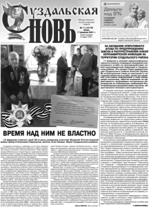 Газета основана 21 марта 1918 г. № 11 (12176) среда, 17 февраля 2021 г. Общественно политическая газета Реклама О текущей санитарно-эпидемиологической ситуации в Суздальском районе, о ходе вакцинации заслушали Т.С.Быстрову, зав. кабинетом статистики Суздальской районной больницы. Она отметила, что заболеваемость ОРВИ и пневмонией за последние две недели наблюдается без нарастания. О ситуации в общеобразовательных учреждениях Суздальского района в настоящее время доложил А.В.Кириллов, заместитель начальника управления образования. Он представил анализ заболеваемости среди педагогического состава и обучающихся, вакцинировании от коронавирусной инфекции работников образовательных учреждений. О проводимой работе по профилактике коронавирусной инфекции на территории района доложили А.В.Кузнецов, заместитель начальника ОМВД России по Суздалькому району, Е.А.Борисов, заместитель начальника отдела надзорной деятельности и профилактической работы по городу Владимиру и Суздальскому району управления надзорной деятельности и профилактической работы ГУ МЧС России по Владимирской области, Е.А.Чижикова, заместитель начальника управления по экономике и финансам. О состоянии с коронавирусной инфекцией и вакцинацией в учреждениях социальной защиты населения и у получателей социальных услуг подробно проинформировала И.Е.Степанова, директор ГКУ «Отдел социальной защиты населения по Суздальскому району». Она отметила, что учреждения соцсферы - отдел социальной защиты населения, Комплексный центр социального обслуживания населения Суздальского района, Суздальский социально-реабилитационный центр для несовершеннолетних, Суздальский дом-интернат для престарелых и инвалидов, дом-интернат «Пансионат пос. Садовый» - с введением режима повышенной готовности функционируют по утвержденным планам мероприятий по недопущению распространения коронавирусной инфекции. Обслуживание на дому пожилых граждан социальными работниками продолжается в рабочем режиме. В настоящее время во всех социальных учреждениях проводится работа по вакцинации сотрудников и проживающих. Со всеми проведена разъяснительная работа. Комплексный центр социального обслуживания населения в настоящее время проводит опрос среди лиц старше 65 с целью выявления граждан, желающих сделать прививку, а также оказывает содействие по доставке их на вакцинацию по графику, согласованному с поликлиникой. О выполнении поручений предыдущего оперативного штаба отчитались главы администраций поселений Суздальского района. По итогам заседания оперативным штабом дан ряд поручений и рекомендаций. Г.КИРИЛЛОВА. НА ЗАСЕДАНИИ ОПЕРАТИВНОГО ШТАБА ПО ПРЕДУПРЕЖДЕНИЮ ЗАВОЗА И РАСПРОСТРАНЕНИЯ НОВОЙ КОРОНАВИРУСНОЙ ИНФЕКЦИИ НА ТЕРРИТОРИИ СУЗДАЛЬСКОГО РАЙОНА 11 февраля в режиме видеоконференцсвязи состоялось очередное заседание оперативного штаба по противодействию новой коронавирусной инфекции в Суздальском районе. Его провел Глава администрации Суздальского района Алексей Сараев. Во вступительном слове он рассказал о заседании областного штаба, довел до сведения участников информацию о ходе вакцинации населения, обратил внимание на эффективность проводимых контрольных мероприятий по соблюдению требований Роспотребнадзора предприятиями торговли, общественного питания 