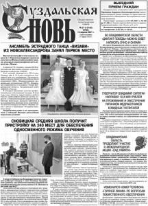 Газета основана 21 марта 1918 г. № 27 (12192) среда, 14 апреля 2021 г. Общественно политическая газета 4 апреля в ГТК «Суздаль» прошел XIV Всероссийский фестиваль-конкурс хореографического искусства «ГРАНИ». Этот конкурс проводится с 2014 года, Суздаль уже в 13-й раз становится площадкой для его проведения. Организаторами конкурса являются International dance organization (IDO), Общероссийская танцевальная организация (ОРТО), Федерация современных и эстрадных танцев Владимирской области, Танцевальный Совет UNESCO в России. В конкурсе принимают участие профессиональные и начинающие танцоры. В этом году нашу область представляли ребята класса хореографии Детской школы искусств с. Новоалександрово Доронин Егор, Святова Анастасия, Циорина Светлана и их руководитель Волкова Анна Сергеевна. По итогам конкурса ансамбль «Визави» занял 1 место в номинации «Ансамбли бального танца». Поздравляем ребят и их преподавателя с победой! Желаем дальнейших творческих успехов! АНСАМБЛЬ ЭСТРАДНОГО ТАНЦА «ВИЗАВИ» ИЗ НОВОАЛЕКСАНДРОВА ЗАНЯЛ ПЕРВОЕ МЕСТО СНОВИЦКАЯ СРЕДНЯЯ ШКОЛА ПОЛУЧИТ ПРИСТРОЙКУ НА 240 МЕСТ ДЛЯ ОБЕСПЕЧЕНИЯ ОДНОСМЕННОГО РЕЖИМА ОБУЧЕНИЯ Воспитанники Детской школы искусств с.Новоалександрово приняли участие во Всероссийском фестивале-конкурсе хореографического искусства «Грани». ВЫЕЗДНОЙ ПРИЕМ ГРАЖДАН Суздальским межрайонным прокурором Черновым Андреем Александровичем проводится выездной прием граждан на территории муниципального образования Боголюбовское сельское поселение. Прием будет проводиться 21.04.2021 с 10.00 до 11.00 в п. Сокол в здании библиотеки по адресу: Суздальский район, пос. Сокол, д.2, кв. 5. Возможна предварительная запись на прием по телефонам: 2-07-35, 2-19-65. ВО ВЛАДИМИРСКОЙ ОБЛАСТИ «ДИКТАНТ ПОБЕДЫ» МОЖНО БУДЕТ НАПИСАТЬ ОЧНО И ОНЛАЙН 29 апреля Владимирская область примет участие в Международной просветительско-патриотической акции «Диктант Победы». Её площадки в регионе расположатся в ряде учреждений образования, культуры и на базе других организаций – полный перечень пунктов размещён на интерактивной карте проекта. Кроме того, на вопросы исторической викторины можно ответить в формате онлайн на сайте диктантпобеды.рф. Задания - всего их 25 - подготовлены экспертами Российского исторического общества, Российского военно-историческое общества и Российского гуманитарного университета. Вопросы посвящены событиям первых военных лет, а также маршалам Георгию Жукову и Константину Рокоссовскому – в этом году отмечается их 125-летие. Победителей акции «Диктант Победы» определят в июне. «Диктант Победы» проводится с 2019 года. Цель акции – привлечение широкой общественности к изучению истории Великой Отечественной войны, повышение исторической грамотности и патриотическое воспитание молодёжи. Среди организаторов проекта – Российское историческое общество, Российское военно-историческое общество и Всероссийское общественное движение «Волонтёры Победы». Акция проходит при поддержке Минпросвещения России. С дополнительной информацией о проекте можно ознакомиться на сайте диктантпобеды.рф. В апреле - мае во Владимирской области пройдут мероприятия патриотической акции «Сад памяти». Международный проект предполагает посадку 27 миллионов деревьев в память о погибших в годы Великой Отечественной войны. Каждый саженец - это символ благодарности