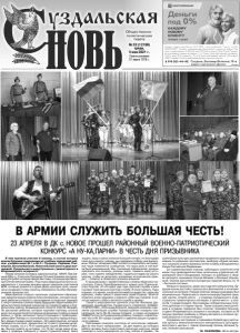 Газета основана 21 марта 1918 г. № 33 (12198) среда, 5 мая 2021 г. Общественно политическая газета В нем приняли участие 8 команд, в состав которых вошли будущие призывники из учебных заведений района: ученики школ № 1 и № 2 г. Суздаля, Садовой, Сновицкой, Боголюбовской, Новосельской школ и двух колледжей: Суздальского индустриально-гуманитарного и Владимирского аграрного. Перед началом конкурса администратор «МКУК Павловский КДЦ» с. Спасское Городище Татьяна Кинеева организовала для ребят интерактивную выставку, посвященную Великой Отечественной войне. Участники мероприятия могли ознакомиться с личными вещами наших земляков-участников ВОВ, которые хранятся в музее Дома культуры села, научились складывать плащ-палатку, примерили на себя обмундирование прошлых лет. Мероприятие открыла начальник управления образования администрации района Ольга Богданова, которая пожелала ребятам успешного прохождения конкурсных заданий. С напутственным словом перед будущими защитниками Родины выступил военный комиссар по городу Суздалю и Суздальскому району Владимирской области Сергей Можаев. Он рассказал ребятам, которые подлежат призыву, сколько раз в год осуществляется призыв на военную службу и в какие войска, а также напомнил присутствующим о приближающемся Дне Победы и о значимой роли нашего народа в борьбе с фашистскими захватчиками. «Это мероприятие, которое проводится сегодня, приурочено не только к призыву на военную службу, но и к 76-й годовщине нашей Великой Победы. Вы все знаете из истории, что 76 лет назад наши отцы, деды и прадеды победили в самой страшной войне. Было трудно, наша страна понесла большие потери, но благодаря силе духа нашего народа, мы одержали победу над фашизмом. Сейчас западные СМИ пытаются переписать историю, все чаще появляются сообщения, что наша роль в той войне была минимальной. Мы, поколение победителей, должны пресекать эти попытки, должны знать, помнить нашу историю, чтить память победителей, гордиться подвигом своего народа, чтобы не допускать искажения исторической правды», - отметил в своем выступлении военком. К призывникам с приветственным словом обратился настоятель Спасо-Преображенского храма села Порецкое, отец Георгий: «Я отслужил два года срочной службы и мои сыновья тоже прошли срочную службу. Я этим горжусь. Годы в армии, это время, когда воспитывается мужество, характер мужчины, главы семьи и защитника своей Родины. Хочется пожелать всем здоровья и мирного неба над годовой. А залогом мирного неба и является служба в армии». Также в мероприятии приняли участие Валерий Шушанский, руководитель Суздальского отделения «БОЕВОГО БРАТСТВА», Александр Борисов, ведущий инженер отделения организации службы пожаротушения пожарно-спасательной части № 26 города Суздаля, а также сотрудники ОМВД России по Суздальскому району, пожарно-спасательной части № 26 города Суздаля и администрации Суздальского района. Программа конкурса состояла из нескольких заданий. Два из них были «домашними». За две недели до конкурса ребята должны были подготовить визитную карточку своей команды и снять видеоролик на тему «Скоро в армию». На сцене Дома культуры призывники продемонстрировали свои навыки по одеванию противогаза, разборке-сборке автомата и показали знания правовых основ службы в Вооруженных Силах Росси
