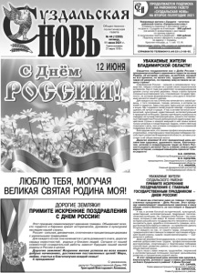 Газета основана 21 марта 1918 г. № 44 (12209) пятница, 11 июня 2021 г. Общественно политическая газета Этот праздник символизирует единение граждан. Объединяет всех, кто гордится и бережно хранит историческое, духовное и культурное наследие нашей страны. Россия - сильная, динамичная, сплоченная и процветающая держава с уникальными традициями. Для каждого из нас она начинается с уюта домашнего очага, дорогих сердцу окрестностей, родных и близких людей. Сегодня от нашей совместной созидательной работы зависит будущее нашей малой родины и России в целом. Дорогие земляки! Искренне желаю успехов во всех ваших добрых начинаниях, достижения поставленных целей! Мира, любви, счастья и благополучия каждой семье! С праздником! С уважением, депутат Государственной Думы РФ Григорий Викторович Аникеев. ДОРОГИЕ ЗЕМЛЯКИ! ПРИМИТЕ ИСКРЕННИЕ ПОЗДРАВЛЕНИЯ С ДНЕМ РОССИИ! Сердечно поздравляем вас с Днём России - праздником всеобщего единения и гордости за нашу Родину, её историю, культуру, за жителей, которые во все времена, не жалея сил, трудились, обеспечивая её развитие, по первому зову вставали на защиту страны! Современная Россия – сильное и независимое государство, твёрдо стоящее на страже своих национальных интересов. Год от года она укрепляет на международном уровне статус могучей державы. Наша страна прошла сложный многовековой путь становления государственности, на котором формировалась сила духа и незыблемые ценности нашего народа. Для каждого из нас Отечество начинается с малой родины, с того поселения, города, региона, в котором он живёт и трудится. Здесь наш дом, здесь растут наши дети и внуки. Мы гордимся своей родной землёй, стремимся сделать её лучше и краше. У нас в активе богатый исторический, культурный, нравственный, интеллектуальный и природный потенциал. Однако претворить в реальность надежды на лучший завтрашний день, решить поставленные Президентом России амбициозные задачи ради процветания страны и каждой живущей в ней семьи можно только упорным и плодотворным трудом, ответственным подходом к делу, при условии солидарности и взаимной поддержки всех граждан. Благодарим всех, кто своими профессиональными достижениями, спортивными и творческими победами способствует развитию Владимирской области, активно участвует в её общественной жизни. Дорогие земляки! В этот праздничный день желаем вам здоровья, душевного покоя, благополучия, успехов в созидательном труде на благо России и родного региона! Пусть в ваших семьях царят мир и согласие, а каждый новый день приносит только радость! В.В. СИПЯГИН, Губернатор Владимирской области. В.Н. КИСЕЛЁВ, председатель Законодательного Собрания Владимирской области. С.С. МАМЕЕВ, Главный федеральный инспектор по Владимирской области. 12 июня мы отмечаем один из главных государственных праздников – День России. Этот праздник символизирует национальное единение и нашу общую ответственность за настоящее и будущее страны. У нас в активе богатый исторический, культурный, нравственный, интеллектуальный, природный, геополитический потенциал. Но, главная сила России – мы сами, люди, которые в ней живут. В самые сложные периоды истории российского государства его неизменно спасали крепость духа, дружба и сплоченность граждан, которые всегда были едины в главном – в стремлении сделать Отчизну неза