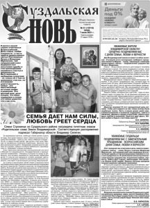 Газета основана 21 марта 1918 г. № 51 (12216) среда, 7 июля 2021 г. Общественно политическая газета За примерами крепких, любящих семей далеко ходить не надо. Они живут рядом с нами. Семья Строкиных из поселка Боголюбово - одна из них. Анна и Максим в браке - 16 лет, в семье пятеро детей- две дочки и три сына. Максим по профессии строитель-отделочник, закончил профессиональный лицей в г. Владимире. В доме многое сделано его руками, навыки столярно-мебельного производства он прививает и своим сыновьям. Анна закончила финансово-экономический институт в Москве по специальности «Государственное и муниципальное управление». Находясь в отпуске по уходу за ребенком, она активно занимается творческим развитием детей. К тому же она прекрасно готовит, разводит цветы, занимается огородом, является членом родительского комитета, участвует в организации школьных мероприятий. За успехи в воспитании детей семья Строкиных была награждена Благодарственным письмом фонда поддержки детского творчества «Планета талантов» за плодотворную работу, большой личный вклад в музыкально-эстетическое воспитание подрастающего поколения и сохранение национальных культур в 2020 году и Благодарственными письмами от Новосельской школы за активное воспитание детей и участие в общественной жизни школы. Дети в семье Строкиных занимаются творчеством и спортом, ведут здоровый образ жизни. В этом большой пример им показывают родители. Старшая дочь Анастасия ( 2005 г. р.) является победителем и призером многих конкурсов и фестивалей, таких как «Золотой ангел», «Звезды в ладонях» и др., имеет дипломы за активное участие в вокально-хоровых ансамблях, в конкурсе чтецов, в первенстве района по настольному теннису. Вторая дочь - София ( 2006 г. р.), также лауреат многих конкурсов и фестивалей - «Мир талантов», «Ромедаль», «Рябиновое Ополье» , «Звездочки Ополья»и др., не отстает от старшей сестры.Она занимается в музыкальной школе по классу скрипки и является вокалисткой в ансамбле народного театра эстрадной песни «Алфавит», отлично рисует, в этом году заняла первое место в районных соревнованиях по лыжным гонкам. Сестры и родители могут гордиться успехами и мальчишек. Николай ( 2010 г.р.) занимается боксом, посещает музыкальную школу по классу домры. Он также лауреат конкурсов юных исполнителей на народных инструментах. Младшие братья Алексей ( 2014 г. р.) и Арсений (2017 г.р.) пока еще наблюдают за успехами старших членов семьи. В семье Строкиных все строится на любви , взаимоуважении, понимании, участии, ответственности. Может поэтому ее смело можно назвать счастливой, где все делится поровну - любовь, радости и горести, успехи и неудачи. Остается только пожелать этой семье счастья и здоровья, мира и добра, а главное - пронести через всю жизнь самое светлое чувство - ЛЮБОВЬ. Семья, действительно, начало всех начал. Недаром говорят, что если погибнет семья, погибнет человечество. Любите свои семьи, дорожите ими. И пусть любовь греет наши сердца, а семья придает нам сил, чтобы жить! Ирина ПЕТРОВА. Фото из семейного альбома Строкиных. СЕМЬЯ ДАЕТ НАМ СИЛЫ, ЛЮБОВЬ ГРЕЕТ СЕРДЦА Семья Строкиных из Суздальского района награждена почетным знаком «Родительская слава Земли Владимирской». Соответствующее распоряжение подписал Губернатор области Владимир Сипягин. 8 июля в нашей стране отмечается Всероссийский 