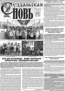 Газета основана 21 марта 1918 г. № 54 (12219) пятница, 16 июля 2021 г. Общественно политическая газета ЛЕТО ДЛЯ ИСТОКОВЦЕВ - ВРЕМЯ ТВОРЧЕСКОЙ ПЕРЕЗАГРУЗКИ, СВОБОДНОЙ ФАНТАЗИИ Среди работ художников из разных уголков России представлены и работы суздальцев (педагогов ЦДО «Исток» и их учеников): Михейкиной И.П. и её ученика Весёлкина Кирилла; Перепелицыной О.Н. и её учениц Зяблицкой Марии, Зяблицкой Дарьи, Волковой Алёны, Куликовой Василисы, Курашкиной Софьи, Кузнецовой Василисы; Бычковой Е.А. и её учениц Шматковой Веры, Акимовой Ольги, Добротиной Варвары, Кочешковой Анны, Корочкиной Екатерины, Карамновой Серафимы. Тесное сотрудничество «Истока» с летней творческой школой «Новые имена» продолжается с 2018 года. За это время ребята получили мастер-классы у лучших преподавателей московских художественных школ и ВУЗов, приняли участие в международных летних пленэрах и творческих проектах по созданию интегрированного произведения изобразительного искусства и литературы «Суздаль глазами Новых имён». По результатам этого проекта уже были изданы два сборника иллюстрированных очерков. В этом году вышел в свет новый сборник, посвящённый 800-летию Александра Невского. В «Истоке» на ул. Кремлёвской состоялась творческая встреча с руководителем этого литературно-графического проекта - Ладыгиным Е.В. (Художник-график, графический дизайнер, литератор, педагог и учёный. Член Творческого Союза художников России и International federation of artists UNESCO, эксперт Художественно-экспертного совета Благотворительного Фонда «Новые имена» имени Иветты Вороновой, кандидат педагогических наук). Евгений Владиславович рассказал о своём интересном творческом пути, своих успешных дизайн-проектах, работе над путеводителями по городам России, поделился своими творческими находками и некоторыми секретами с юными художниками «Истока». Особенно приятно было получить из рук Е.В. Ладыгина, как руководителя литературно-графического проекта «Суздаль глазами Новых имён», авторские экземпляры нового сборника «Александр Невский». Евгений Владиславович озвучил планы работы над следующим этапом проекта этого года - «Суздаль – город музей», в нём художники постараются в своих очерках и этюдах рассказать о городе с этой точки зрения. Работу над проектом уже начали в первой смене пленэра «Новых имён», в ней приняли участие истоковцы: Карамнова Серафима, Корочкина Екатерина, Курашкина Софья, Кузнецова Василиса. Во второй смене, с 5 июля работают на пленэре «Новых имён» Зяблицкие Мария и Дарья, Куликова Василиса и Волкова Алёна. В июле, используя все возможные укрытия в тени городской зелени, работают на пленэре также четыре студии «Истока»: «Образ», рук. Михейкина И.П., «Этюд», рук. Винниченко О.Н., «Акварель», рук. Бычкова Е.А., «Ладушки», рук. Перепелицына О.Н. Этот многочисленный профильный художественный отряд размещается на базе СОШ №2, в формате городского лагеря. Юные художники занимаются со своими руководителями по программе летней творческой практики. Студийцы выполняют пейзажи, портреты друг друга, натурные зарисовки растений, которыми богаты суздальские газоны. Изучая историю русской живописи, рассматривают репродукции картин и примеряют на себя образы их героев косплеем - способом, который стал популярным в период изоляции. Пожелаем юным художникам «Истока» дальнейших успе