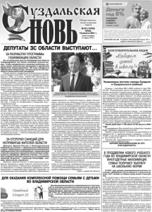 Газета основана 21 марта 1918 г. № 63 (12228) среда, 18 августа 2021 г. Общественно политическая газета Реклама ЗА РАЗРАБОТКУ ПРОГРАММЫ ГАЗИФИКАЦИИ ОБЛАСТИ На сегодняшний день во Владимирской области газифицировано чуть более половины сельских домов. Чтобы продвинуться в решении проблемы, региону нужны комплексная программа и адекватное бюджетное финансирование. Об этом говорится в обращении к губернатору, которое депутаты ЗС приняли на своем июльском заседании. Общий уровень газификации во Владимирской области составляет около 83%. Но если в городах он приближается к 100%, то в селах – менее 53%. Выполнить поставленную Президентом РФ задачу полностью обеспечить газом все территории России к 2030 году в нашем регионе возможно, если прямо сейчас взяться за решение проблемы. На июльском заседании Законодательного Собрания депутаты выступили с обращением в адрес Губернатора. Необходимо разработать программу и заложить средства в бюджет на 2022 год. Инициатором обращения выступила фракция «Единая Россия» в ЗС. Дело в том, что сейчас газификация обеспечивается тремя источниками. На крупные населенные пункты денег выделяется много, а на небольшие – мало. Тем временем, именно там самый низкий уровень газификации. Уже сейчас на 2022 год подано заявок на 130 млн руб., а лимит на газификацию в следующем году – только 56 млн руб. Депутаты считают, что денег на эту статью расходов нужно выделять больше. Области нужна четкая программа действий. Проект есть, но документ нужно «довести до ума». Депутаты обратились к губернатору с просьбой не затягивать этот вопрос. Как только программа с учетом пожеланий народных избранников будет готова, они ее примут. Чтобы уже в следующем году большее количество людей смогли подключиться к газу. «Люди уже подготовили документы, чтобы провести газ на свои участки. Чтобы газифицировать все дома, денег нужно в два с лишним раза больше, чем сейчас. С учетом наших предложений, к 2025 году в регионе будет построено около 150 км газовых сетей, а голубое топливо дополнительно получат не менее 3 тыс. домовладений. Поэтому нам очень важно отстоять позицию наших жителей и довести эту работу до конца», - пояснил председатель Заксобрания Владимир Киселев. ЗА ОТСРОЧКУ САНКЦИЙ ДЛЯ НЕПРИВИТЫХ ЖИТЕЛЕЙ ОБЛАСТИ Фракция «Единой России» в Законодательном Собрании выступила с официальным обращением в адрес губернатора и руководителя регионального подразделения Роспотребнадзора с предложением отсрочить введение санкций за неисполнение требований по прививкам. Депутаты считают, что в условиях дефицита вакцины уложиться в установленные сроки (до 15 августа – 1 доза и до 15 сентября – вторая), практически, нереально. Фракция «Единой России» в Законодательном Собрании направила в адрес главного санитарного врача Татьяны Даниловой и губернатора Владимира Сипягина обращения по поводу смещения предельных сроков вакцинации сотрудников ряда отраслей. Напомним, по установленным ныне правилам работники образования, ДЕПУТАТЫ ЗС ОБЛАСТИ ВЫСТУПАЮТ... здравоохранения, социальной защиты, сферы обслуживания, торговли и др. обязаны до 15 августа сделать первый компонент прививки от COVID-19, а до 15 сентября – второй. По итогу вакцинировано должно быть не менее 60% от численности каждого трудового коллектива. Согласно пояснениям Минтруда, все, кто отказался ил