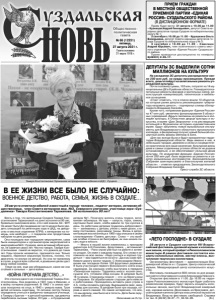 Газета основана 21 марта 1918 г. № 66 (12231) пятница, 27 августа 2021 г. Общественно политическая газета Весть о том, что жительнице Суздаля Тамаре Константиновне Таракановой на днях исполнится 90 лет, буквально ошеломила всех, кто с ней знаком. Ей - 90?! Не может быть! До пандемии ее часто можно было увидеть спешащей на репетицию хора в ЦКД, на дежурство в местное отделение КПРФ, к ветеранам на помощь, или наоборот — с подарком или продуктовым набором на день рождения. Она посещала все городские мероприятия, сама была инициатором и организатором мероприятий в микрорайоне №3 г. Суздаля, вела активный образ жизни, не замечая своих лет. Честно говоря, Тамаре Константиновне самой не верится, что дожила до таких лет. Годы прошли незаметно, признается она. Только недавно, перенеся серьезную болезнь, поняла, что двигатель-то внутри не вечный. Но она по-прежнему в строю, в курсе всех событий, в домашних делах даст фору любой хозяйке. Глядя на нее, еще раз убеждаешься, какие же они стойкие и сильные — дети войны. «ВОЙНА ПРОГНАЛА ДЕТСТВО...» Это строчка одного из стихотворений Тамары Константиновны. Она родилась в 1931 году в Иваново, и в войну потеряла родителей. В 1942 г. в семью пришла похоронка на отца, в 1943 г. умерла мама. Трое детей остались сиротами. 14-летнюю сестру Галину определили учиться в фабрично-заводское училище, а Тамару с братом — в детский приемник, где девочка переболела сыпным тифом. Оттуда — в Суздальский детдом №1. Поначалу жилось очень трудно, вспоминает юбилярша. Из еды — капуста, горох, свекла, картошки было мало, хлеба давали по три кусочка в день. Но работники детдома трудились добросовестно — занимались с детьми, учили с ними уроки, ставили постановки, разучивали танцы. Жизнь в детдоме бывшая воспитанница в 1960 году описала в своем стихотворении «Память детства». Стихи — это вообще особая строка в ее биографии, их она начала писать еще в юности. — Много в нашей жизни изменилось с приходом директора А.И.Соколова, фронтовика, - вспоминает Тараканова. - Рано утром уже был на работе и затемно уходил. Он имел к каждому подход. Его слова я запомнила на всю жизнь: «Надо учиться и хорошо трудиться — вам надеяться не на кого». Да и мы сами пробивали дорогу жизни трудом. С Александром Ивановичем мы посадили более 100 фруктовых деревьев. Я была участницей первого Всесоюзного слета юных садоводов. За хорошую учебу выступала в передаче «Пионерская зорька». Трудились много: косили сено, сушили его, готовили обед косцам. В детдоме было 18 га земли. Старожилы помнят — это на берегу реки на Покровке. Ее обрабатывали старшие дети вместе с работниками. Приходилось вставать рано утром в 4-5, чтобы поливать рассаду. Выращивали овес, вику, клевер для скотины. В детдоме были три лошади, корова и много свиней. Но самое интересное, что все, что мы делали, нам было не в тягость. Дети были окружены заботой. Окончание на 3 стр. В ЕЕ ЖИЗНИ ВСЕ БЫЛО НЕ СЛУЧАЙНО: ВОЕННОЕ ДЕТСТВО, РАБОТА, СЕМЬЯ, ЖИЗНЬ В СУЗДАЛЕ... 26 августа отметила юбилей известный в городе человек , педагог-ветеран, активная общественница, член Совета ветеранов мкр. №3, Северного уличкома, участница хора «Суздалянка» Тамара Константиновна Тараканова. Ей исполнилось 90 лет! ПРИЕМ ГРАЖДАН В МЕСТНОЙ ОБЩЕСТВЕННОЙ ПРИЕМНОЙ ПАРТИИ «ЕДИНАЯ РОССИЯ» СУЗДАЛЬСКОГО РАЙОНА (В ДИСТАНЦИОННОМ ФОРМАТЕ) Прием будут вести: 31 августа с 10.00
