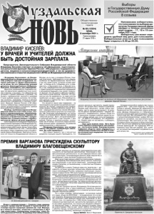ДЕЛА. СОБЫТИЯ. ЛЮДИ общественно политическая газета УЗДАЛЬСКАЯ № 69 (12234) среда, 8 сентября 2021 г. 3 В торжественной обстановке он вручил цветы и медали : врачам Борису Исаеву, Юлии Кулеш, работающим в терапевтическом отделении Суздальской РБ, врачам Ирине Солдатовой, Оксане Барыгиной, медицинской сестре Татьяне Михайловой из Суздальской поликлиники. Все они, что называется , были на передовой, когда началась пандемия. Медаль — достойная награда за добросовестный труд, профессионализм, большой вклад в борьбу с новой коронавирусной инфекцией. За плечами каждого из награжденных большой опыт работы в системе здравоохранения, много лет беззаветного служения своему долгу - стоять на страже здоровья населения нашего района. Девиз награды - слова апостола Павла: «Вера, Надежда, Любовь, но Любви из них больше». Именно любовь к своей профессии, к людям помогли суздальским медикам преодолеть все трудности тогда, продолжают помогать и сейчас, потому что пандемия не закончилась и когда закончится — неизвестно. При вручении наград присутствовали главный врач Суздальской районной больницы Виктор Пустовой, его заместитель по амбулаторно-поликлинической работе Ольга Китаева, врачи и медицинские сестры, журналисты, которые тепло поздравили награжденных. Александр Кудинович рассказал о том, что представляет собой общероссийское общественное движение «Россия Православная». Оно было создано в 1997 году по благословению Патриарха Московского и Всея Руси Алексия II. Цели движения - формирование общественного сознания на основе исторических традиций России, православной культуры и нравственности, утверждение гражданского и межнационального согласия. Членами движения являются видные политики, общественные деятели, народные артисты, музыканты, писатели, работники правоохранительных органов. Движение издает свою газету «Десятина» и имеет ряд региональных отделений, одно из них - в нашей Владимирской области. Он отметил, что наградить медиков было особо приятно, потому что традиция награждать издавна была на Руси и движение «Россия Православная» эту традицию активно продолжает. Ведь награда - это признание особых заслуг человека перед обществом и государством, и награжденные суздальские медики медаль «За жертвенное служение», безусловно, заслужили. Ирина БЕЛАН. Фото Г.Фирсовой. НАГРАДЫ «РОССИИ ПРАВОСЛАВНОЙ» ЗА ЖЕРТВЕННОЕ СЛУЖЕНИЕ Слева направо: Александр Кудинович, Ирина Солдатова, Оксана Барыгина, Владимир Пустовой, Ольга Китаева, Татьяна Михайлова, Борис Исаев. Эти цветы можно было бы вручить всем медикам Суздальского района, которые помогают людям бороться с ковидом. Памятные медали «За жертвенное служение», газета «Десятина». 2 сентября в Суздальской поликлинике чествовали медиков: руководитель Владимирского регионального общероссийского общественного движения «Россия Православная» Александр Кудинович вручил медали «За жертвенное служение» , которыми медицинские работники были награждены по решению Центрального совета движения. 8 сентября, в День финансиста в МБУК «Суздальская районная централизованная библиотечная система» откроется выставка Банка России «Время и деньги». Выставка расскажет об истории денег, эволюции способов их производства, хранения и защиты, об уникальных технологических достижениях, которые сегодня