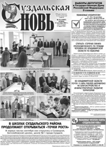 Газета основана 21 марта 1918 г. № 72 (12237) пятница, 17 сентября 2021 г. Общественно политическая газета УВАЖАЕМЫЕ ИЗБИРАТЕЛИ! 17, 18 и 19 сентября 2021 года с 08.00 до 20.00 вы можете проголосовать в помещении участковой избирательной комиссии по месту жительства (месту нахождения - в случае подачи заявления о включении в список избирателей по месту нахождения). Если вы не сможете прибыть на избирательный участок по уважительным причинам (по состоянию здоровья, инвалидности, в связи с необходимостью ухода за лицами, в этом нуждающимися, и иным уважительным причинам, не позволяющим прибыть в помещение для голосования), вы можете до 19 сентября до 14.00 обратиться в участковую избирательную комиссию с целью подачи устного или письменного обращения о голосовании вне помещения для голосования. ВЫБОРЫ ДЕПУТАТОВ в Государственную Думу Российской Федерации 8 созыва Любой житель Владимирской области может сообщить о нарушениях избирательных прав, особое внимание обращается на реализацию избирательных прав граждан с инвалидностью, на доступность избирательных участков, а также на информирование избирателей о содержании избирательной кампании и имеющихся у них избирательных правах. Работа «горячей линии» продлится до 19 сентября включительно. Любой желающий сможет сообщить о нарушении своих избирательных прав и получить консультацию у юристов аппарата Уполномоченного по телефонам: 8-900-478-00-33 (внимание: звонок платный - согласно установленному тарифу вашей сотовой связи); или 8 (4922) 53-11-31, 8 (4922) 53-20-60. Начиная с 17 по 19 сентября (включительно), «горячая линия» будет на связи с 8.00 до 20.00. ОТКРЫТА «ГОРЯЧАЯ ЛИНИЯ» УПОЛНОМОЧЕННОГО ПО ПРАВАМ ЧЕЛОВЕКА ВО ВЛАДИМИРСКОЙ ОБЛАСТИ ПО ВЫБОРАМ ВО ВЛАДИМИРСКОЙ ОБЛАСТИ ПОЧТИ 15 МЛН РУБЛЕЙ НАПРАВЛЕНО НА БЛАГОУСТРОЙСТВО И ИНФРАСТРУКТУРНОЕ РАЗВИТИЕ ТЕРРИТОРИЙ Под пристальным вниманием Президента Российской Федерации В.В.Путина постоянно находится система образования. Им поставлена задача обеспечить конкурентоспособность российского образования и вхождение нашей страны в число ведущих стран мира по качеству общего образования. Для достижения этой цели разработаны 8 национальных проектов, которые относятся к сфере образования и являются основой дальнейшего развития системы образования на ближайшие пять лет. С 2020 года в Суздальском районе ведется активная работа по внедрению федерального целевого проекта «Современная школа» национального проекта «Образование». В школах района открываются центры образования цифрового, естественно- научного, технического и гуманитарного профилей «Точка роста». В начале нового 2021-2022 учебного года они открылись еще в трех образовательных учреждениях: Сновицкой, Боголюбовской общеобразовательных школах, суздальской школе №1. Продолжение читайте на 2 стр. В ШКОЛАХ СУЗДАЛЬСКОГО РАЙОНА ПРОДОЛЖАЮТ ОТКРЫВАТЬСЯ «ТОЧКИ РОСТА» В первых числах сентября они открылись в Сновицкой, Боголюбовской школах, школе №1 города Суздаля. На открытии «Точки роста» в Боголюбовской школе Алексей Сараев, Иван Решетов, Вячеслав Картухин, Дмитрий Козлов, Ольга Богданова. В одном из классов «Точки роста» Боголюбовской школы. На занятиях в одном из классов «Точки роста» в Сновицкой школе. Кабинет физики в суздальской школе №1 показывают директор школы Сергей Юдин и преподаватель физики Роман Давыдов. В Снов