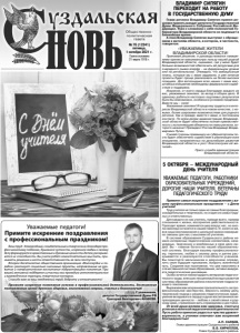 Газета основана 21 марта 1918 г. № 76 (12241) пятница, 1 октября 2021 г. Общественно политическая газета Ваш труд - благородный, созидательный и творческий. Благодаря профессионализму педагога, душевной чуткости, искренней любви к своему делу формируются нравственные и духовные ценности детей, раскрываются их способности. Вы учите ребят самостоятельно мыслить, принимать решения и нести ответственность за свои поступки. Второе десятилетие общественная организация «Милосердие и порядок» реализует социально значимые проекты, направленные на развитие и патриотическое воспитание подрастающего поколения. При вашей активной поддержке и участии мы проводим интеллектуальные и краеведческие турниры, творческие конкурсы. Спасибо вам за ваш ежедневный труд, доброту и отзывчивость! Уважаемые педагоги! Примите искренние поздравления с профессиональным праздником! Примите искренние пожелания успехов в профессиональной деятельности, достижения поставленных целей! Крепкого здоровья, неиссякаемой энергии, счастья и благополучия! С уважением, депутат Государственной Думы РФ Григорий Викторович АНИКЕЕВ. «УВАЖАЕМЫЕ ЖИТЕЛИ ВЛАДИМИРСКОЙ ОБЛАСТИ! Принимая решение, я руководствовался намерением принести максимальную пользу нашей родной Владимирской области, оценивал, где у меня будет больше возможностей обеспечить её ресурсами для очередного рывка вперёд – на федеральном уровне или на региональном. Очевидно, что амбициозные планы, которые мы с вами задумали, и уже начатые проекты будет проще реализовать на более высоких позициях. Для воплощения всех наших с вами масштабных инициатив необходимы федеральное содействие и поддержка. Искренне, от всего сердца благодарю каждого из вас, уважаемые земляки, за вклад в общее дело. В одиночку добиться настолько ощутимых результатов было бы невозможно, особенно в условиях пандемии. Вместе мы – сила! Уважаемые земляки! Я продолжу трудиться в интересах Владимирской области в новом качестве, с новыми, более широкими возможностями для родного региона. Как и прежде, вместе с вами, в постоянном контакте. По всем делам администрации Владимирской области будет обеспечена полная преемственность с исполняющим обязанности главы региона, которого назначит Президент России Владимир Владимирович Путин. С моей стороны преемнику на губернаторском посту будет обеспечено содействие в реализации всех инициатив, направленных на дальнейшее развитие Владимирской области и рост благополучия её жителей». Пресс-служба администрации Владимирской области. Примите самые искренние поздравления с вашим профессиональным праздником – с Днем учителя! Труд учителя не только один из самых благородных, созидательных и творческих, но и один из самых трудных и ответственных. Для каждого из нас учитель, прежде всего, пример отношения к жизни, восприятия действительности. Проходит время, изменяется мир вокруг нас, но школа навсегда останется в нашей памяти. И, конечно же, все наши воспоминания о школьной жизни неразрывно связаны для нас с мыслями об учителях. В системе образования Суздальского района немало интересных педагогических коллективов, незаурядных, творческих и влюбленных в свое дело людей. Вы – главное богатство нашей образовательной системы. Благодаря вашему профессионализму, терпению, любви к своему делу и дет
