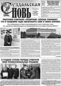 Газета основана 21 марта 1918 г. № 88 (12253) пятница, 12 ноября 2021 г. Общественно политическая газета 12+ ПРИЕМ ГРАЖДАН В МЕСТНОЙ ОБЩЕСТВЕННОЙ ПРИЕМНОЙ ПАРТИИ «ЕДИНАЯ РОССИЯ» СУЗДАЛЬСКОГО РАЙОНА (В ДИСТАНЦИОННОМ ФОРМАТЕ) Прием будут вести: 16 ноября с 10.00 до 11.00 – Гусева Ольга Константиновна, глава администрации муниципального образования Павловское; 17 ноября с 10.00 до 11.00 – Савина Светлана Вячеславовна, депутат Совета народных депутатов муниципального образования Новоалександровское по избирательному округу № 1; 19 ноября с 10.00 до 11.00 – Керова Надежда Александровна, депутат Совета народных депутатов муниципального образования Боголюбовское по избирательному округу № 11. Прием проводится дистанционно по телефону 8 (49231) 2-05-17. сложно находиться в постоянном состоянии стресса, носить маски и соблюдать все меры предосторожности. К сожалению, к этому опять пришлось вернуться. Важным защитным фактором от коронавируса стала вакцинация. На предприятии компании «Промрукав» с самого начала ведется большая разъяснительная работа о надежности и эффективности вакцинации. Ведь очень важно, чтобы каждый человек понимал ответственность за свое здоровье и здоровье, а может быть и жизнь, окружающих. Руководствуясь рекомендациями Минтруда, Роспотребнадзора, постановлениями Губернатора области, главного государственного санитарного врача, мы продумали организацию вакцинации сотрудников компании. Для удобства, по договоренности с Суздальской районной больницей на предприятие выезжал мобильный ФАП, где проходила вакцинация. Каждый, кто вакцинировался, получал два дня к отпуску и небольшой сладкий подарок в виде плитки шоколада. В настоящий момент на предприятии проводится регулярная обработка помещений антисептиками, на стендах размещены памятки о ковиде и вакцинации, непривитые по тем или иным причинам сотрудники компании строго соблюдают масочный режим. Но компания «Промрукав» заботится не только о своих работниках, но и о жителях Суздальского района, на территории которого располагается предприятие. Так в декабре 2020 года была оказана материальная помощь 5 многодетным семьям. В районную больницу в рамках проекта «Спасибо врачам» Партии «ЕДИНАЯ РОССИЯ» были переданы медицинские маски. В феврале 2021 года компанией были приобретены защитные костюмы для медицинского персонала Суздальской районной больницы, на базе которой предполагалось развернуть ковидный госпиталь. Недавно сюда было передано 10 000 одноразовых шприцов. Наряду с вакцинацией от коронавируса, организована и вакцинация от гриппа. После Нового года многие сотрудники компании пройдут ревакцинацию от ковида. В настоящее время в администрацию Владимирской области подготовлены и переданы документы для получения паспорта «Здоровое предприятие», в которых содержится информация, связанная с факторами, влияющими на состояние здоровья сотрудников и тех мерах, которые принимаются администрацией предприятия для сохранения и укрепления здоровья сотрудников, улучшения качества их жизни в условиях производства. Подводя итог вышесказанному, хочу еще раз обратить внимание на важность вакцинации, только при высоком ее уровне мы сможем дать достойный отпор коронавирусу.Защитить себя и своих близких сейчас - это не только наш долг, но и гражданская обязанность. И это хорошо понимают