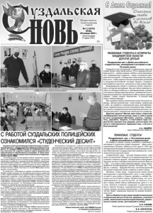Газета основана 21 марта 1918 г. № 5 (12272) среда, 26 января 2022 г. Общественно политическая газета 12+ В рамках ежегодной общероссийской акции «Студенческий десант», приуроченной ко Дню российского студента, 21 января ОМВД России по Суздальскому району посетили 32 студента первого курса Суздальского индустриально-гуманитарного колледжа. С ними занималась целая группа представителей разных подразделений отдела МВД. В актовом зале гостей приветствовал помощник начальника отдела МВД России по Суздальскому району - начальник отделения по работе с личным составом (ОРЛС) подполковник внутренней службы П.Г. Королев. Он рассказал представителям студенческой молодёжи Суздаля из каких подразделений состоит ОМВД, какие основные задачи выполняет его личный состав, какие госуслуги по линии МВД здесь могут оказать посетителям. А начальник отделения по делам несовершеннолетних (ОПДН) майор полиции Т.А. Ястребова рассказала студентам о том, в какие неприятности может попасть подросток, плохо дружащий с законом, и как избежать таких ситуаций. Познакомила она ребят и с местной музейной экспозицией, повествующей о славных традициях суздальских стражей порядка, о ветеранах, являющихся гордостью ОМВД, показала самые интересные экспонаты. Т.А. Ястребова также раздала гостям памятки по профилактике мошенничества. Специалист по воспитательной работе отделения по работе ОРЛС капитан внутренней службы А.В. Голева сообщила о том, что ОМВД всегда готово пополнить свои ряды образованными и имеющими интерес к службе в силовом ведомстве сотрудниками. Были названы пути получения специального образования в профильных вузах. Специалист направления по вооружению группы тылового обеспечения старший лейтенант внутренней службы А.В. Рыбенков продемонстрировал молодёжи образцы табельного оружия, экипировки и спецсредств. Полицейские разрешили гостям поближе познакомиться со столь необычным для гражданского человека снаряжением. Старший инспектор ДПС ГИБДД ОМВД старший капитан полиции А.М. Волков рассказал, чем занимаются сотрудники местной Госавтоинспекции, продемонстрировал, чем они экипированы, ответил на вопросы ребят. Запомнилось знакомство с работой экспертно-криминалистической группы (ЭКГ). Пояснения гостям давал эксперт капитан полиции М.В. Вараксин. Он объяснил, как можно обнаружить фальшивые купюры, некоторым «экскурсантам» показал, как снимаются отпечатки пальцев. Ряд студентов ушёл домой с оригинальными сувенирами. Председатель Общественного совета при ОМВД России по Суздальскому району В.А. Сухов напомнил ребятам о том, что много интересных и полезных материалов о буднях суздальских стражей порядка публикуется на официальном сайте администрации Суздальского района, в соцсетях Фейсбук и ВКонтакте, в районной газете «Суздальская новь» и рекомендовал почаще «заглядывать в эти адреса». А ещё выступавший напомнил, что уже более 2 лет ОМВД и Общественный совет выпускают на своих интернет-ресурсах так называемый «МОЛОДЁЖНЫЙ ПРАВОВОЙ ВЕСТНИК ПОЛИЦИИ», цель которого профилактическая - информировать школьников и студентов Суздальского района о правовой ответственности за нарушение законодательства РФ, связанного с правоохранительной деятельностью полиции; рассказывать о губительных последствиях (в том числе для здоровья) пагубных п