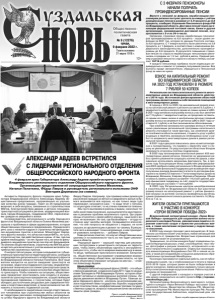 Газета основана 21 марта 1918 г. № 9 (12276) среда, 9 февраля 2022 г. Общественно политическая газета 12+ 4 февраля врио Губернатора Александр Авдеев провёл встречу с лидерами Владимирского регионального отделения Общероссийского народного фронта. Организацию представляли её сопредседатели Галина Мизелева, Наталья Палаткина, Фёдор Лавров и руководитель регионального исполкома ОНФ Виктория Дерипаско (на снимке). Активисты Народного фронта передали врио Губернатора Владимирской области Александру Авдееву общественные предложения, направленные на улучшение качества жизни граждан. Пакет из 24 предложений включает в себя вопросы, связанные со строительством ФАПов, благоустройством дворов и детских площадок, транспортной ситуацией в регионе, модернизацией вокзала города Владимира, поддержкой НКО, переселением граждан из аварийного жилья. Сопредседатель регионального штаба Народного фронта во Владимирской области Галина Мизелева рассказала о проблемах в сфере здравоохранения, которые общественники отразили в предложениях. Прежде всего речь шла о нехватке кадров и строительстве фельдшерско-акушерских пунктов в регионе. Мониторинг Народного фронта показал, что зачастую новые ФАПы, по-сути, строятся не там, где действительно нужны. А там, где они крайне необходимы – их нет. Кроме того, во многих фельдшерско-акушерских пунктах до сих пор нет фельдшеров. По мнению общественников, строительство ФАПов должно вестись исключительно с учетом мнения жителей и потребностей населенных пунктов. О непростой ситуации, которая складывается с общественным транспортом на территории региона, сообщила сопредседатель регионального штаба Народного фронта во Владимирской области Наталья Палаткина. Все чаще жители жалуются на долгое ожидание транспорта на остановке, недостатки подвижного состава, неудовлетворительное техническое состояние транспортных средств. А Меленковский район и вовсе остался без общественного транспорта. Чтобы повлиять на ситуацию, общественники предлагают восстановить (или создать) в муниципалитетах транспортные предприятия, осуществляющие пассажирские перевозки, с госучастием, которые будут обладать достаточными ресурсами для содержания техники и подготовки водителей, а также возможностью обновлять и пополнять подвижной состав. О необходимости закрепления личной ответственности чиновников при строительстве любых объектов на их территории рассказал сопредседатель регионального штаба Народного фронта во Владимирской области Федор Лавров. Например, при приемке новых домов для расселения граждан из ветхого и аварийного жилья на бумаге оказывается все хорошо, но как только люди туда переезжают, начинается хаос – то вода течет с потолка, то штукатурка отлетает, то на стенах появляется плесень. «Мы часто выезжаем в районы и видим, насколько тот либо иной глава поселения, муниципалитета заинтересован в решении проблем населенного пункта. Где управленцы относятся к своей работе хорошо, чаще всего вопрос не возникает. Но там, где безалаберно – оттуда постоянно идут жалобы жителей. Складывается впечатление, что они попросту не общаются с людьми, не хотят слушать их аргументацию и делают по-своему. В результате чего и возникают точки напряжения, а нам приходится улаживать конфликты», – добавил Лавров. Глава регио