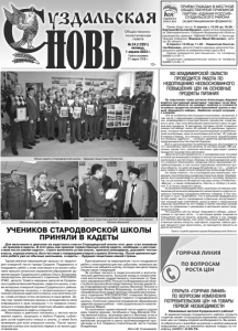 Газета основана 21 марта 1918 г. № 24 (12291) пятница, 1 апреля 2022 г. Общественно политическая газета 12+ ПРИЕМ ГРАЖДАН В МЕСТНОЙ ОБЩЕСТВЕННОЙ ПРИЕМНОЙ ПАРТИИ «ЕДИНАЯ РОССИЯ» СУЗДАЛЬСКОГО РАЙОНА (в дистанционном формате) По поручению главы региона Александра Авдеева ведётся постоянный мониторинг торговых точек Владимирской области на предмет наличия и стоимости основных продуктов питания бакалейной группы и овощей «борщевого набора». Наиболее острая ситуация - с сахаром. «Из-за особенностей ситуации в экономике, связанной, в том числе, с нарушением сложившихся логистических цепочек, изменениями в структуре бизнес-процессов, сахар вырос в цене. При этом фиксируем ажиотажный спрос на данный вид продукта. В магазинах торговых сетей стоимость сахара составляет около 80 рублей. В удалённых территориях, которые обслуживаются организациями потребительской кооперации, цена за килограмм достигает 137 рублей. В первую очередь, это связано с логистикой. Отрабатываем эти вопросы адресно», - сообщил директор Департамента предпринимательства Сергей Сидорин. Всего организациями потребкооперации обслуживается 757 населённых пунктов региона. В систему входит 294 магазина, кроме того, сельские магазины практикуют развоз продуктов посредством автолавок. «Достигнута договорённость о своевременной поставке оптовой организацией сахарного песка в организации Владкоопсоюза в достаточных объёмах по фиксированной цене, что позволит реализовать сахарный песок магазинами потребкооперации, в том числе в отдалённых населённых пунктах области, по цене не выше 90 рублей за 1 кг», - отметил врио первого заместителя Губернатора Александр Ремига. Он также отметил, что в последние дни наметилась тенденция к постепенному снижению спроса на сахар. Одновременно восстанавливается регулярность поставок продукта. Так, по состоянию на 28 марта в торговых сетях («Пятёрочка», «Магнит», а также гипермаркеты «Лента» и «Глобус») в наличии 71,8 тонны сахарного песка. Установлено взаимодействие с крупными оптовыми компаниями региона для ежедневного мониторинга и других социально значимых продовольственных товаров, в том числе круп и соли. Отмечается, что в магазинах федеральных сетей имеет место сокращение отдельных ассортиментных позиций круп (гречневой, риса) в связи с повышенным спросом населения на эти товары и более низкими ценами на них по сравнению с ценниками в магазинах малых предпринимателей. Что касается цен на овощи «борщевого набора», реализуемые в торговых сетях, - в настоящее время отмечается повышение цен на капусту, морковь, свёклу и лук. Однако это явление ежегодное, оно носит сезонный характер. Собственные запасы капусты, картофеля, моркови, свёклы урожая прошлого года закончились, их приходится завозить из других регионов. Пресс-служба администрации Владимирской области. ВО ВЛАДИМИРСКОЙ ОБЛАСТИ ПРОВОДИТСЯ РАБОТА ПО НЕДОПУЩЕНИЮ НЕОБОСНОВАННОГО ПОВЫШЕНИЯ ЦЕН НА ОСНОВНЫЕ ПРОДУКТЫ ПИТАНИЯ ОТКРЫТА «ГОРЯЧАЯ ЛИНИЯ» ПО ВОПРОСАМ ИЗМЕНЕНИЯ ПОТРЕБИТЕЛЬСКИХ ЦЕН НА ТОВАРЫ ПЕРВОЙ НЕОБХОДИМОСТИ Уважаемые жители Суздальского района! В администрации Суздальского района открыта «горячая линия» по вопросам изменения потребительских цен на товары первой необходимости. Вы можете обратиться с жалобой на резкое и необоснованное повышение цены на жизненно важ