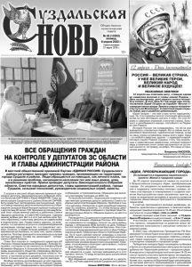Газета основана 21 марта 1918 г. № 26 (12293) пятница, 8 апреля 2022 г. Общественно политическая газета 12+ 5 апреля в местной общественной приемной принимали депутаты Законодательного Собрания области Вячеслав КАРТУХИН и Юрий ФЕДОРОВ, Глава администрации Суздальского района Алексей САРАЕВ. Хотя прием был запланирован дистанционный, депутат Совета народных депутатов муниципального образования Селецкое Юрий Хохорин приехал пообщаться с депутатами ЗС лично. У Ю. Хохорина за плечами большой опыт общественной работы в районном Совете народных депутатов, в Совете МО Селецкое. Сделано немало добрых дел. Вот и в этот раз жители села Туртино обратились к местному депутату за содействием в подключении газа. Людям помочь удалось, но выяснилось, что расценки на услуги в специализированной организации гораздо выше тех, что предлагают частники. Конечно, у людей больше доверия к специализированной организации, но цены там, прямо скажем, кусаются. Поэтому приходится пользоваться услугами частных мастеров. Почему так происходит? - интересовался Юрий Хохорин. Ответ был получен от генерального директора АО «Газпром газораспределение Владимир» Алексея Конышева, с которым тут же связался по телефону Юрий Матвеевич Федоров. А. Конышев объяснил, что все тарифы акционерного общества утверждены Департаментом цен и тарифов администрации области. Конечно, у частников услуги дешевле, поскольку они не платят столько налогов, не имеют других расходов. Вообще вопросы догазификации не раз поднимались в ходе приема. На них отвечал Алексей Сараев. Например, хотят газифицировать свои домостроения в Обращихе, в Новокаменском. Обращиха уже внесена в программу Газпрома на 2023 год. По просьбе жителей с. Борисовское позвонил в общественную приемную депутат районного Совета народных депутатов Геннадий Абрамов. Проблема в том, что к магазину «Пятерочка» в селе неудобный подъезд, надо бы изменить разметку. По этому вопросу депутат ЗС Юрий Федоров пообщался с руководством Госавтоинспекции области. Обещали выехать на место и разобраться. Руководитель Суздальского отделения Всероссийского союза женщин «Надежда России» В.И. Вавилина спрашивала по телефону, получат ли «дети войны» наряду с ветеранами ВОВ выплату ко Дню Победы? На этот вопрос ответил Вячеслав Картухин. Указ о региональной единовременной выплате ко Дню Победы подписал врио Губернатора области Александр Авдеев. По 6 тысяч рублей получат инвалиды и участники ВОВ, выплата в размере 4 тысяч рублей назначена труженикам тыла, жителям блокадного Ленинграда и малолетним узникам фашистских концлагерей. Граждане, относящиеся к категории «дети войны», получат ко Дню Победы 1132 рубля. В ходе приема было несколько вопросов, которые уже решаются в суде, поэтому вмешиваться в этот процесс нельзя. По ряду вопросов даны разъяснения и консультации. Все обращения находятся на контроле и у депутатов ЗС, и у Главы администрации Суздальского района. Галина ФИРСОВА. Фото автора. ВСЕ ОБРАЩЕНИЯ ГРАЖДАН НА КОНТРОЛЕ У ДЕПУТАТОВ ЗС ОБЛАСТИ И ГЛАВЫ АДМИНИСТРАЦИИ РАЙОНА В местной общественной приемной Партии «ЕДИНАЯ РОССИЯ» Суздальского района регулярно проходят приемы граждан, проживающих на территории города Суздаля и района. Люди обращаются за помощью, как личного плана, так и в решении проблем, касающихся населения тех или 