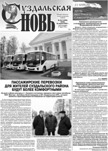 Газета основана 21 марта 1918 г. № 29 (12296) среда, 20 апреля 2022 г. Общественно политическая газета 12+ В выступлении перед депутатами Законодательного Собрания 24 марта глава региона Александр Авдеев назвал одной из ключевых задач нормализацию работы общественного транспорта. Данная проблема является актуальной для всех районов области. В настоящее время регионом проводится работа по организации финансирования закупки нового подвижного состава общественного транспорта за счёт средств бюджетных кредитов, полученных из федерального бюджета. Ряду муниципальных образований области субсидия из средств областного бюджета на обновление парка общественного транспорта уже предоставлена. Суздальский район в их числе. Это первый район в области, который провел процедуру электронного аукциона и закупил автобусы, сэкономив тем самым около 1 млн рублей. На днях у Дома культуры в г. Суздале состоялась передача трех новых автобусов ПАЗ «Вектор». Два автобуса вместимостью 71 место и один 54. Все они оборудованы подъемниками и местами для маломобильных групп населения. Транспорт был закуплен за счет средств областного и районного бюджетов. Из бюджета области было выделено более 21 млн рублей, процент софинансирования районного бюджета составил 5%. В мероприятии приняли участие Вячеслав Картухин, заместитель председателя Законодательного Собрания Владимирской области, Алексей Сараев, Глава администрации Суздальского района и Александр Сибирский, генеральный директор АО «Суздальское АТП». Автобусы были переданы в АО «Суздальское АТП», которое является гарантирующим поставщиком на ПАССАЖИРСКИЕ ПЕРЕВОЗКИ ДЛЯ ЖИТЕЛЕЙ СУЗДАЛЬСКОГО РАЙОНА БУДУТ БОЛЕЕ КОМФОРТНЫМИ На днях у Дома культуры в г. Суздале состоялась передача трех новых автобусов ПАЗ «Вектор». Автобусы были переданы в АО «Суздальское АТП», которое является гарантирующим поставщиком на территории района. территории района. Ежедневно из Суздальского АТП на линию выходят 15 автобусов, в выходные дни около 13. Автопарк большой, но многие транспортные средства уже имеют достаточный износ и требуют обновления. Приобретенные автобусы сделают передвижение суздальцев и гостей района более комфортными. После завершения всех необходимых процедур новые ПАЗы выйдут на линию в самое ближайшее время. Фото М. Пахомовой. Вячеслав Картухин, Алексей Сараев и Александр Сибирский. Уважаемые руководители и сотрудники муниципальных органов Владимирской области! Примите самые искренние поздравления с Днём местного самоуправления! Залог успешного развития региона – в грамотно выстроенной работе местных властей. Именно к вам в первую очередь люди обращаются со своими просьбами и предложениями. Именно вы поддерживаете прямой диалог с жителями, оперативно реагируете на их обращения, воплощаете в жизнь инициативы граждан по развитию родного города или села. Работа муниципального служащего требует от человека широкого спектра знаний, большой ответственности и выдержки. От вашего профессионализма и неравнодушия во многом зависит доверие граждан к государству. Принятие обсуждаемого сейчас Федерального закона «Об общих принципах организации местного самоуправления в единой системе публичной власти» изменит многое, но не суть: вы были и остаётесь для жителей первой и главной инстанцией по всем о