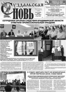 Газета основана 21 марта 1918 г. № 57 (12324) среда, 27 июля 2022 г. Общественно политическая газета 12+ Справки об условиях - по тел. 8 (49231) 2-08-95 УВАЖАЕМЫЕ ЧИТАТЕЛИ! Если вы не успели подписаться на газету «Суздальская новь», чтобы получать ее в редакции, не беда! ВЫ МОЖЕТЕ СДЕЛАТЬ ЭТО В ЛЮБОЕ ВРЕМЯ! Оформить подписку можно по адресу: г. Суздаль, Красная пл., д. 1 (каб. 12,18). ВЫПИСАВ ГАЗЕТУ, ВЫ ВСЕГДА БУДЕТЕ В КУРСЕ СОБЫТИЙ ГОРОДА, РАЙОНА, ОБЛАСТИ! ПОДПИСКА НА ГАЗЕТУ «СУЗДАЛЬСКАЯ НОВЬ» НА 2-е ПОЛУГОДИЕ 2022 ГОДА Реклама «Следственное управление по Владимирской области сегодня удостоено чести разместить на фасаде здания таблицу, увековечивающую память первых русских следователей – сподвижников Петра Великого, офицеров Преображенского полка Григория Скорнякова-Писарева и Льва Измайлова, которые внесли большой вклад в развитие современного следствия», – отметил руководитель регионального Следственного управления СК России Артём Кулаков. «Владимирская земля вошла в историю как место, связанное с одним из первых профессиональных расследований в России. Работа петровских следователей имела государственное значение. Пётр был великим реформатором, добился коренных преобразований практически во всех сферах. Также и создание следственных канцелярий стало важным шагом первого российского императора к закреплению и росту всех достигнутых результатов. И, что очень важно, жители Российской империи убедились, что правда и справедливость фактически стали государственными ценностями и ориентирами. Уже 305 лет работа следственных органов служит гарантией существования единого и сильного Российского государства и соблюдения прав и законных интересов всех граждан», – подчеркнул Александр Авдеев. НАША СПРАВКА В 1718 году в Суздале первые следователи Петра Великого – Григорий Скорняков-Писарев и Лев Измайлов вели следствие в отношении бывшей супруги императора Евдокии Лопухиной, которая была заподозрена в государственной измене. Это уголовное дело стало частью многоэпизодного дела по обвинению в госизмене бывшего наследника престола царевича Алексея Петровича. СОТРУДНИКИ ОРГАНОВ СЛЕДСТВИЯ ВЛАДИМИРСКОЙ ОБЛАСТИ ОТМЕТИЛИ ПРОФЕССИОНАЛЬНЫЙ ПРАЗДНИК 25 июля глава региона Александр Авдеев принял участие в торжественных мероприятиях, посвящённых Дню сотрудника органов следствия России. В этот день на здании Следственного управления Следственного комитета Российской Федерации по Владимирской области была открыта мемориальная доска в честь деятельности на территории Владимирской губернии первых следственных органов России и 350-летия со дня рождения их основателя Петра I (на снимках). Летняя творческая школа в Суздале проводится ежегодно при поддержке Президентского Фонда культурных инициатив, Министерства культуры Российской Федерации, Департамента культуры Владимирской области и Департамента внешнеэкономических и международных связей города Москвы. В 2022 году школа «Новые имена» приняла более 250 одарённых детей, юных музыкантов, художников и их педагогов со всех уголков России. В этом году от Владимирской области участниками юбилейной Летней творческой школы стали 27 юных дарований. Софинансирование 21 путёвки произвела администрация региона, а шестеро учащихся детских музыкальных и школ искусств региона по итогам конкурсного отбора стали