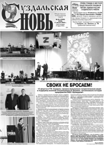 Газета основана 21 марта 1918 г. № 63 (12330) среда, 17 августа 2022 г. Общественно политическая газета 12+ Сейчас в городах России проходит акция в поддержку военной спецоперации по защите жителей Донбасса. Ее цель - поддержать российских военных и показать единство граждан страны. Свое отношение к проводимой на Украине спецоперации выразило и руководство предприятия «Промрукав», которое работает на территории муниципального образования Павловское в Суздальском районе. 12 августа в ГТК «Суздаль» им был организован концерт с участием известных рок-групп, исполняющих песни патриотической направленности, которые не раз выступали на территории ЛНР и ДНР, перед раненными нашими солдатами в госпиталях. Напомним - военная спецоперация на Украине началась 24 февраля 2022 года. Президент России Владимир Путин заявил, что главной ее целью является демилитаризация и денацификация Украины, и что она продлится до достижения всех поставленных целей. «Нам просто не оставили другого выбора», - говорит Президент страны. Знаки Z и V с выразительной надписью - «СВОИХ НЕ БРОСАЕМ!» стали одним из символов поддержки Российской армии во время спецоперации на Украине. Минобороны РФ официально заявило, что латинские буквы Z и V означают - «ЗА ПОБЕДУ!» Именно такие знаки были нанесены на флажки, размещенные на зрительские кресла в концертном зале ГТК, в дополнение к надписи - ООО «ПРОМРУКАВ». Ведущая концерта известная владимирская тележурналистка Мария Платанюк представила его участников . Это известные рок-группы «Зверобой», «Джанго» и ее руководитель, солист Алексей Поддубный, группа «Троiка», ее создатель и солист Эдуард Шилов. Перед началом концерта она предоставила слово Алексею Петрикову, заместителю генерального директора ООО «Промрукав», Почетному гражданину Суздальского района, который сам был участником военной операции по наведению конституционного порядка в Чечне. Он, в частности, сказал о том, как сейчас во время проведения миротворческой спецоперации на Украине важна поддержка наших ребят, которые сражаются за честь и интересы России. И что основная цель этой музыкально-патриотической акции, о проведении которой приняло решение руководство предприятия «Промрукав», его генеральный директор Константин Власов, выразить свое отношение к Российской армии и ее солдатам, которые защищают мирных жителей Донбасса - «МЫ СВОИХ НЕ БРОСАЕМ!», «НАШЕ ДЕЛО ПРАВОЕ, МЫ ПОБЕДИМ!» Первой выступление начала рок-группа «Зверобой», песни которой можно охарактеризовать одной фразой - они прожиты сердцем. «Голос мой» - название первой из них, затем была исполнена песня «Едут, едут БТРы», которая уже стала популярной в Донбассе. «Русская весна», так называется их новый альбом, в мае этого годы члены группы побывали с концертами в Мариуполе. Перед выступлением вторых участников концерта -рокгруппы «Джанго», необыкновенно трогательные стихи поэта Михаила Шмелева «Не стреляйте люди в облака» прочитала Мария Платанюк об ангелах Донбасса - детях, погибших там во время военных действий и похороненных на Аллее ангелов. Группа «Джанго» и ее солист Алексей Поддубный дали в Донбассе более 100 концертов в поддержку военной спецоперации на Украине. Их песня «Мы не уйдем» превратилась в гимн ДНР, не менее известна их песня «Холодная весна». Завершило концерт выступление рок-г