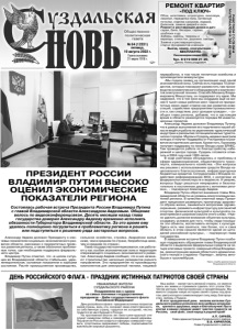 Газета основана 21 марта 1918 г. № 64 (12331) пятница, 19 августа 2022 г. Общественно политическая газета 12+ РЕМОНТ КВАРТИР «ПОД КЛЮЧ» Обои, шпатлевка, штукатурка, линолеум, ламинат, переделка пола, натяжные потолки, отделка санузлов, лоджий, балконов, замена дверей и окон. Ремонт и реставрация домов и дач: сараи, бани, беседки, гаражи, хозблоки и др. Заборы, навесы, террасы и веранды, отмостки, дорожки, заезды. Замена и реставрация крыш, старых фундаментов и венцов. Выезд, замер, консультации – БЕСПЛАТНО. РАБОТАЕМ СО СВОИМ МАТЕРИАЛОМ И ЗАКАЗЧИКА Тел. 8 919 008 21 20, Денис Александрович. Пенсионерам скидка 20% Реклама Александр Авдеев доложил Президенту о ключевых показателях социально-экономического развития области, рассказал о приоритетных проектах развития региона, а также обозначил проблемные точки, где необходима поддержка федерального центра. Владимир Путин отметил, что «в целом ситуация во Владимирской области стабильная, удовлетворительная, основные показатели в хорошем состоянии. Растёт промышленное производство, ПРЕЗИДЕНТ РОССИИ ВЛАДИМИР ПУТИН ВЫСОКО ОЦЕНИЛ ЭКОНОМИЧЕСКИЕ ПОКАЗАТЕЛИ РЕГИОНА Состоялась рабочая встреча Президента России Владимира Путина с главой Владимирской области Александром Авдеевым. Общение велось по видеоконференцсвязи. Десять месяцев назад глава государства доверил Александру Авдееву временно исполнять обязанности Губернатора Владимирской области. За это время ему удалось полноценно погрузиться в проблематику региона и решить или подступиться к решению ряда застарелых вопросов. сельское хозяйство, стройка. Аварийное жильё ниже, чем в среднем по стране, безработица ниже, чем в среднем по стране». Глава государства поинтересовался, как работают у нас особая экономическая зона и территория опережающего социально-экономического развития. Александр Авдеев сообщил, что в них начинают строительство несколько резидентов разного направления. Это предприятия по производству компонентов для электронной техники, пищевой переработки, в том числе тепличные хозяйства и производители аквакультуры. «Мы подали заявку на организацию ещё одной экономической зоны. Сейчас есть порядка 10 резидентов, которые планируют разместить там производство климатического оборудования и компонентов электронной техники. Спасибо Михаилу Владимировичу Мишустину, он поддержал эту идею. Мы надеемся, что в той зоне мы создадим ещё не менее 5 тысяч новых рабочих мест. Одной из приоритетных своих задач ставлю как раз развитие инвестиций, содействие предприятиям промышленности и, как следствие, рост доходов граждан», – сообщил глава региона, добавив, что в настоящее время в области реализуется порядка 60 инвестиционных проектов. Александр Авдеев доложил Владимиру Путину, что в рамках выполнения его поручения в нашей области ведётся работа по укреплению туристической индустрии и раскрытию потенциала малых туристических городов. Муром и Суздаль недавно выиграли конкурс и получат поддержку от Ростуризма на развитие исторических центров. Кроме того, Гороховец получает поддержку по линии Фонда стран БРИКС. Там проводится работа по благоустройству набережной и центра города. Суздаль готовится отметить в 2024 году своё 1000-летие. В ходе разговора обсуждались и проблемы в сфере здравоохранения, общественного транспорта, коммунального х