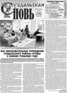 Газета основана 21 марта 1918 г. № 66 (12333) пятница, 26 августа 2022 г. Общественно политическая газета 12+ РЕМОНТ КВАРТИР «ПОД КЛЮЧ» Обои, шпатлевка, штукатурка, линолеум, ламинат, переделка пола, натяжные потолки, отделка санузлов, лоджий, балконов, замена дверей и окон. Ремонт и реставрация домов и дач: сараи, бани, беседки, гаражи, хозблоки и др. Заборы, навесы, террасы и веранды, отмостки, дорожки, заезды. Замена и реставрация крыш, старых фундаментов и венцов. Выезд, замер, консультации – БЕСПЛАТНО. РАБОТАЕМ СО СВОИМ МАТЕРИАЛОМ И ЗАКАЗЧИКА Тел. 8 919 008 21 20, Денис Александрович. Пенсионерам скидка 20% Реклама В соответствии с постановлением администрации Суздальского района от 23.05.2022 №1125 «О комиссии по приемке образовательных организаций к новому 2022-2023 учебному году», распоряжением департамента образования администрации Владимирской области от 01.06.2022 №552 «О подготовке организаций, осуществляющих образовательную деятельность, к началу 2022-2023 учебного года», приказом управления образования от 08.06.2022 №309 «О подготовке образовательных организаций к новому 2022-2023 учебному году» утверждено положение о комиссии по приемке образовательных организаций к новому учебному году, состав комиссии и график работы. В Суздальском районе в текущем году подлежали приемке 43 образовательные организации, из них: 15 общеобразовательных школ, в том числе 1 филиал, 19 дошкольных образовательных организаций, 7 организаций дополнительного образования, а также 2 частных учреждения. Все образовательные организации имеют лицензии на право ведения образовательной деятельности, свидетельства о государственной аккредитации. Подготовка к новому учебному году включает в себя следующие направления: выполнение мероприятий пожарной безопасности, обеспечение санитарно-эпидемиологического, гигиенического благополучия, проведение мероприятий антитеррористической направленности, совершенствование материально-технической базы образовательных организаций, обеспечение мероприятий, связанных с профилактикой и предотвращением коронавирусной инфекции (COVID-19), проведение мероприятий по организации подвоза школьников. Образовательные организации района на 100% оснащены установкой ПАК «Стрелец-Мониторинг», автоматической пожарной сигнализацией (далее - АПС), средствами пожаротушения. Руководители организаций и лица, ответственные за обеспечение мер пожарной безопасности, обучены по пожарно-техническому минимуму. В целях обеспечения соблюдения санитарно-эпидемиологического и гигиенического режимов организовано прохождение сотрудниками детских садов и школ медицинских осмотров на сумму 982 684 рубля. В целях проведения косметических ремонтов в образовательных организациях на приобретение строительных и лако-красочных материалов из районного бюджета выделены средства в сумме 1 100 000 рублей. В текущем году из средств областного бюджета выделено 12 660 100 рублей на проведение мероприятий по подготовке к новому учебному году, в том числе для школ - 7 038 800 рублей и для дошкольных учреждений - 5 621 300 рублей. На выделенные средства проведены ремонт кровли в МБОУ «Красногвардейская средняя общеобразовательная школа» (2 527 013 рублей), ремонты помещений под размещение центров образования естественно-научной и технологической направленностей «Точка роста» в МБОУ «Новосельская СО
