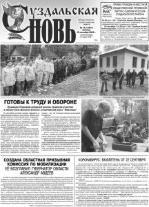 Газета основана 21 марта 1918 г. № 74 (12341) пятница, 23 сентября 2022 г. Общественно политическая газета 12+ Команда Садовой средней школы приняла участие в областном финале военно-спортивной игры "Зарница" 15 сентября на базе лагеря «Дружба» в Ковровском районе состоялся областной финал военно-спортивной игры «Зарница». В нем приняли участие 14 команд - победители муниципальных и городских отборочных этапов. Среди финалистов была и команда Садовой средней школы - представители Суздальского района. Юнармейцы приняли участие в нескольких видах соревнований: разборка-сборка автомата, снаряжение магазина автомата, теоретический конкурс на знание ТТХ стрелкового оружия, исторический конкурс, строевой смотр. Кроме того, в сложных погодных условиях, под проливным дождем, команда участвовала в самом зрелищном этапе соревнований - военно-спортивной эстафете "Один за всех и все за одного". Полоса препятствий, стрельба, поиск мин, медицинский этап, одевание противогаза, метание гранат - вот не полный список испытаний эстафеты. Заключительным конкурсом финала стал этап «Готов к труду и обороне», где участники продемонстрировали свои физические качества: силу, выносливость, гибкость. По итогам соревновательного дня команда Суздальского района заняла 3-е место в строевом смотре и 2-е общекомандное место в блоке «Огневой рубеж». Стоит отметить сплочённость, командный дух, поддержку друг друга наших участников «Зарницы». Все ребята показали себя с самой лучшей стороны. Благодарим юнармейцев и их руководителя Прейшева Виталия Александровича за успешное участие в соревнованиях. Итоговое 7-е место является хорошим результатом, который показывает, что есть к чему стремиться, в чем улучшать подготовку. https://suzdalregion.ru ГОТОВЫ К ТРУДУ И ОБОРОНЕ ПРИЕМ ГРАЖДАН В МЕСТНОЙ ОБЩЕСТВЕННОЙ ПРИЕМНОЙ ПАРТИИ «ЕДИНАЯ РОССИЯ» СУЗДАЛЬСКОГО РАЙОНА Прием будут вести: 28 сентября с 10.00 до 11.00 – Савочкин Андрей Юрьевич, член политического совета местного отделения Партии «ЕДИНАЯ РОССИЯ» Суздальского района; 30 сентября с 10.00 до 11.00 – Срибная Татьяна Александровна, секретарь местного отделения Партии «ЕДИНАЯ РОССИЯ» Суздальского района, первый заместитель Главы администрации Суздальского района по внутренней и социальной политике. Прием будет проводиться по адресу: г. Суздаль, ул. Ленина, д. 78 (районная библиотека), 2 этаж. В 9.00 21 сентября Президент России Владимир Путин в своём обращении к россиянам объявил в стране частичную мобилизацию. Мобилизационные мероприятия стартовали в тот же день. В ходе кампании со всей страны планируется призвать порядка 300 тысяч человек. В состав региональной комиссии вошли военком Владимирской области Юрий Гусаров, представители правоохранительных и других государственных органов области. «Владимирская область приступила к выполнению задач, поставленных Президентом России. Создана областная призывная комиссия по частичной мобилизации. Сегодня мы провели расширенное совещание по мобилизации с участием в том числе муниципалитетов, – сообщил глава региона. – Администрация области и все органы местного самоуправления помогают военному комиссариату в организации призыва, в том числе обеспечением транспортом для доставки призывников к месту службы и организацией медицинского освидетельствования. Нашим мобилизованным землякам буду
