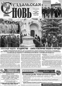 Газета основана 21 марта 1918 г. № 87 (12354) среда, 9 ноября 2022 г. Общественно политическая газета 12+ В мероприятиях в Суздале приняли участие Губернатор Александр Авдеев, врио его первого заместителя Дмитрий Лызлов, председатель Законодательного Собрания Владимир Киселёв, главный федеральный инспектор Сергей Мамеев, сенатор Российской Федерации Ольга Хохлова, митрополит Владимирский и Суздальский Тихон, глава администрации Суздальского района Алексей Сараев, глава администрации Суздаля Сергей Сахаров, другие официальные лица, председатель Дагестанского регионального (республиканского) отделения «Дом Мира» Ольга Мусанабиева, представители общественных объединений, а также жители и гости древнего Суздаля. 4 ноября 1612 года народное ополчение – огромное войско из представителей самых разных сословий, национальностей, вероисповеданий во главе с князем Дмитрием Пожарским и земским старостой Кузьмой Мининым изгнало из Москвы польских интервентов, положив конец Смутному времени. В этом году праздник имеет особое звучание. Этот День народного единства Россия снова встречает с оружием в руках, защищая свою независимость, освобождая от неонацистов Донбасс, Запорожье и Херсонскую область. И как тогда, более чем 400 лет назад, плечом к плечу за правое дело борются все, кому важна судьба и будущее Отечества. И снова осязаема значимость народного единства. «История всегда наказывает за плохо выученные уроки. Как только общество теряло единство, связь с церковью и государством – этим тут же пользовались враги. Это не раз повторялось. Наше единство – главное оружие, способное противостоять любому злу. И сегодня наши ребята ведут сложные бои, чтобы над нами было мирное небо. Чтобы пережить страшное время необходимо единство. Мы это точно знаем. И справедливость восторжествует!» – подчеркнул Александр Авдеев. В завершение митинга в Спасо-Евфимиевом монастыре состоялось возложение цветов к могиле Дмитрия Михайловича Пожарского в знак уважения к национальному герою России и всем соотечественникам, храбро защищавшим Отчизну от врага во все времена. Также в рамках празднования Дня народного единства во Владимирской области состоялся автопробег по маршруту «Владимир – Суздаль», который организовали представители регионального отделения Молодой Гвардии «ЕДИНОЙ РОССИИ», Молодёжной Думы и партнёрских НКО. Конечной точкой акции стал сквер Пожарского. Там участники мероприятий встретились, чтобы возложить цветы к памятнику князю. Пресс-служба администрации области. На снимках: День народного единства в Суздале. АЛЕКСАНДР АВДЕЕВ: «В ЕДИНСТВЕ – СИЛА И ВЕЛИЧИЕ НАШЕГО НАРОДА!» 4 ноября во Владимирской области, как и по всей России, прошли памятные мероприятия, посвящённые Дню народного единства. В нашем регионе традиционно их центром стал Суздаль, где находится усыпальница ключевой фигуры связанных с отмечаемой датой событий - князя Дмитрия Пожарского. Справки по телефону 8 (49231) 2-08-95 УВАЖАЕМЫЕ ЧИТАТЕЛИ! Открыта редакционная подписка на газету «Суздальская новь» на 1-е полугодие 2023 года. Это выгодно! Это удобно! Стоимость подписки в редакции на 1 месяц – 60 руб., с доставкой по г. Суздалю (не менее 5 экземпляров на один адрес) – 65 руб., по району – 70 руб. Оформить подписку можно по адресу: г. Суздаль, Красная пл., д. 1 (каб. 12,18). ВЫПИСАВ ГАЗЕТУ, ВЫ ВСЕГ