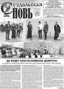 Газета основана 21 марта 1918 г. № 89 (12356) среда, 16 ноября 2022 г. Общественно политическая газета 12+ «ГОРЯЧАЯ ЛИНИЯ» ПО ВОПРОСАМ ПРАВ ДЕТЕЙ В АППАРАТЕ УПОЛНОМОЧЕННОГО ПО ПРАВАМ ЧЕЛОВЕКА ВО ВЛАДИМИРСКОЙ ОБЛАСТИ В ноябре ежегодно проводится Всероссийский день правовой помощи детям. С 14 по 18 ноября в аппарате Уполномоченного по правам человека во Владимирской области работает «горячая линия» по всем вопросам, касающимся прав и свобод детей. Получить БЕСПЛАТНУЮ КОНСУЛЬТАЦИЮ юристов смогут родители, иные родственники и опекуны. Телефоны «горячей линии»: 8 (4922) 53-11-31, 8 (4922) 53-20-60. Так уже повелось, что число 13 считают несчастливым. Возможно, для кого-то это и так, но не для педагогов, сотрудников, добровольных помощников общественной организации в поддержку семьи и детства «Свет жизни» в Суздале и ребят, которые с удовольствием посещают занятия, кружки и секции. 13 ноября торжественно открыли детский культурно-досуговый центр «Света жизни», который теперь будет работать на улице Садовой, дом 50 (здание городских бань). Владимирскую областную общественную организацию «Свет жизни», возглавляет которую депутат городского Совета народных депутатов Елена Голубева, в Суздале и Суздальском районе знают многие. Работает «Свет жизни» для детей и подростков, молодых людей, семей с детьми-инвалидами, многодетных семей, матерей одиночек, женщин, попавших в трудную жизненную ситуацию. Здесь действуют различные творческие мастерские, спортивные секции и центр гуманитарной помощи. Дети и взрослые, попавшие в трудную жизненную ситуацию, могут получить индивидуальную психологическую помощь. За 9 лет своего существования «Свет жизни» протянул руку помощи, отогрел своим теплом сердца и души сотен людей. На торжественное мероприятие открытия детского культурно-досугового центра ВООО «Свет жизни» пригласили всех сопричастных этому по-настоящему благому делу: представителей администрации г. Суздаля, церкви, спонсоров, волонтеров, сотрудников. Каждый из присутствующих вложил свой посильный вклад. Почетное право перерезать красную ленточку, символизирующую начало работы нового центра, предоставили главе администрации г. Суздаля Сергею Сахарову, заместителю председателя ВООО АРДИ «Свет» Юрию Кацу, председателю Совета ВООО «Свет жизни» в поддержку семьи и детства Елене Голубевой. Гости расположились в просторном светлом зале, на сцене которого и происходили дальнейшие события. В первую очередь Елена Голубева обратилась со словами благодарности ко всем присутствующим. Затем уступила свое место на сцене главе городской администрации Сергею Сахарову. Он, поздравляя всех со столь знаменательным и важным для жителей Суздаля и района событием, рассказал как получилось, что в здании городских бань обрел свое место детский культурно-досуговый центр «Света жизни». Вообще у администрации города были другие планы на это помещение, поступали предложения продать, сдать в аренду. Однако Елена Голубева, как депутат горсовета, руководитель ВООО «Свет жизни» обратилась в администрацию и Совет народных депутатов с просьбой передать это помещение общественной организации. Дело в том, что здание на ул. Промышленной, где все 9 лет располагалась ВООО «Свет жизни», они арендовали, а сейчас собственник продает его. Ситуация складывалась таким образом, что можно было ос