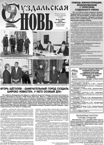 Газета основана 21 марта 1918 г. № 93 (12360) среда, 30 ноября 2022 г. Общественно политическая газета ПОМОЩЬ ВОЕННОСЛУЖАЩИМ, МОБИЛИЗОВАННЫМ С ТЕРРИТОРИИ СУЗДАЛЬСКОГО РАЙОНА Тех, кто сейчас уходит защищать Родину, поддерживает вся страна. Лозунг «Все для фронта, все для победы» сегодня наполняется новым смыслом. Каждый старается внести хоть и небольшой, но очень значимый вклад в общую победу. С первых дней объявления мобилизации в администрацию района поступали предложения от простых граждан, которые хотели быть сопричастными фронту. В связи с этим администрацией района было принято решение создать единый счет для перечисления денежных средств для помощи военнослужащим, мобилизованным с территории нашего района. Не каждый может встать в строй защитников Отечества с оружием в руках, но каждый может внести свой посильный вклад в общее дело Победы. Только вместе, объединившись мы сможем добиться Победы, окончательно ликвидировать угрозу безопасности страны, ее народа и народа освобожденных от нацизма территорий. Реквизиты для перечисления средств: ИНН 3310002540 / КПП 331001001 Управление по экономике и финансам администрации Суздальского района Номер казначейского счета(р/с) 03100643000000012800 ОТДЕЛЕНИЕ ВЛАДИМИР БАНКА РОССИИ//УФК по Владимирской области г.Владимир БИК 011708377 Единый казначейский счет 40102810945370000020 л/с 04283008590 ОКТМО 17654101 КБК 79220705030050000150 Назначение платежа: Добровольные пожертвования для укрепления материально-технической базы военнослужащих при осуществлении мобилизации на территории РФ. 12+ Суздаль – уникальный город-музей. Гости со всего мира стремятся сюда, чтобы проникнуться великолепным ландшафтом в сочетании с прекрасной древней архитектурой, насладиться неповторимой атмосферой, буквально – прикоснуться к старине, очутиться во власти неспешного провинциального жизненного ритма. «Замечательный город Суздаль широко известен, у него особый дух. Наши предки удивительным образом умели выбирать места для жизни. С этой земли началось становление нашего государства. Китайцы говорят: если ты не побывал на Великой китайской стене, ты не настоящий китаец. То же для русских – про Суздаль», – отметил Игорь Щёголев. Городу на пороге его 1000-летия уделяется особое внимание на всех уровнях. Проведены грандиозные работы по благоустройству. Древний город становится комфортнее для жителей и гостей. Подготовка к юбилею – это не просто приведение в порядок фасадов, но и глубокое решение застарелых инфраструктурных вопросов. Это и улично-дорожная сеть, и парковки, и реконструкция объектов жилищно-коммунального хозяйства, строительство и ремонт социальных объектов. «Важно, что поддержан проект по расширению дороги между Владимиром и Суздалем с двух до четырёх полос. Со своей стороны, мы закупили четыре автобуса, которые будут обеспечивать доставку гостей от железнодорожного вокзала Владимира до Суздаля – причём не до автовокзала, а непосредственно до мест размещения. Подстраиваем инфраструктуру для удобства туристов, готовим событийный календарь. Ряд мероприятий уже «обкатываем», они будут получать развитие. В 2024 году событийная программа в Суздале будет очень насыщенной: планируем провести более 50 массовых мероприятий», – сообщил Александр Авдеев. Огромная роль отводится Владимиро-Суздальскому музею-заповеднику. Его объекты – это 