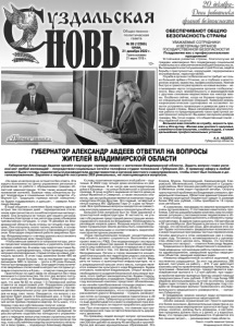 Газета основана 21 марта 1918 г. № 99 (12366) среда, 21 декабря 2022 г. Общественно политическая газета 12+ ОБЕСПЕЧИВАЮТ ОБЩУЮ БЕЗОПАСНОСТЬ СТРАНЫ УВАЖАЕМЫЕ СОТРУДНИКИ И ВЕТЕРАНЫ ОРГАНОВ ГОСУДАРСТВЕННОЙ БЕЗОПАСНОСТИ! Поздравляю вас с профессиональным праздником! Устойчивое развитие страны, благополучие её граждан невозможно без поддержания социальной стабильности и обеспечения всеобщей безопасности. Вы защищаете конституционный строй России, ведёте борьбу с преступностью, коррупцией, терроризмом и экстремизмом, наркоторговлей. Служба в органах госбезопасности требует не только большой любви к Отчизне, но и глубоких и всесторонних знаний, мужества, профессионализма. Умение быстро и грамотно реагировать на новые вызовы – неотъемлемая черта сотрудников органов госбезопасности. Ваш опыт, внимательность и взаимодействие с другими силовыми ведомствами как никогда важны. Особенно сейчас, когда на Украине продолжается специальная военная операция. Киевский режим, националистические группировки не оставляют попыток устраивать провокации и диверсии даже в глубине нашей страны. Ваша напряжённая круглосуточная работа по предотвращению таких преступных акций приносит результат. Вы давно заслужили доверие граждан. Мы точно знаем, что общественный покой – под надёжной защитой. Большое вам спасибо за службу, верность присяге и Отечеству. Желаю вам крепкого здоровья, семейного благополучия, стойкости духа, а также дальнейших профессиональных успехов. А.А. АВДЕЕВ, Губернатор области. 20 декабряДень работника органов безопасности «Ни один из вопросов не останется без ответа. Эта задача возложена на Центр управления регионом и управление по работе с обращениями граждан областной администрации. Учтём также инициативы и пожелания жителей. Важные темы обязательно будут подсвечены в социальных сетях и сюжетах «Губернии-33». Традицию «прямых линий» обязательно будем поддерживать и дальше», – заверил Александр Авдеев. В ходе общения с жителями была поднята одна из острых тем последних дней – периодические отключения электричества из-за неблагоприятных метеоусловий. Она актуальна не только для нашего региона: в Нижнем Новгороде в пик непогоды даже объявляли чрезвычайную ситуацию. С утра 14 декабря во Владимирской области были отказы на четырёх подстанциях. Они коснулись около тысячи жителей, в основном Судогодского, Ковровского и Гороховецкого районов. Благодаря оперативной работе аварийных бригад «Владимирэнерго» к вечеру удалось восстановить электроснабжение всех территорий. «Чтобы меньше зависеть от капризов погоды, регион продолжит модернизировать и укреплять электросетевое хозяйство. В новом году энергетики также будут менять трансформаторы, голые провода на самонесущие изолированные, старые опоры на новые, расчищать просеки. В этом году заменили более 480 км проводов – втрое больше, чем за последние три года, расширили 940 га просек – почти в 23 раза больше, чем за три предыдущих года. Благодаря этому количество аварийных отключений в непростых погодных условиях сократилось в 6 раз», – отметил глава региона. Практически ни один эфир не обходится без темы жилищного строительства. На этот раз вопрос поступил от дольщиков из Владимира. Губернатор сообщил, что дом № 82 по улице 1-й Пионерской сейчас ставится на кадастровый учёт. Опр