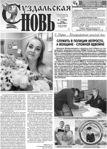 Газета основана 21 марта 1918 г. № 17 (12386) среда, 8 марта 2023 г. Общественно политическая газета 12+ ПОДПИСКА НА ГАЗЕТУ «СУЗДАЛЬСКАЯ НОВЬ» НА 2-е ПОЛУГОДИЕ 2023 ГОДА УВАЖАЕМЫЕ ЧИТАТЕЛИ! Реклама. Сообщаем вам, что продолжается досрочная подписка на районную газету «Суздальская новь» на второе полугодие 2023 года, которую можно оформить во всех почтовых отделениях г. Суздаля и Суздальского района (газету читатели получают по почте). В период досрочной подписки – в марте вы можете выписать газету в отделениях Почты России ПО ЦЕНАМ ПРОШЛОГО ГОДА! Напоминаем вам также о редакционной подписке на газету «Суздальская новь» (с получением газеты в редакции и по редакционной доставке). Это выгодно! Это удобно! Стоимость подписки в редакции на 1 месяц – 60 руб.; с доставкой по городу Суздалю (не менее 5 экземпляров на один адрес)- 65 руб.; по району (доставка по договоренности с редакцией) – 70 руб. Оформить подписку можно по адресу: г. Суздаль, Красная площадь, д. 1. Справки по тел.: 8 (49231) 2-08-95, 2-01-39. Шаг этот был не случаен, годом раньше в ОМВД начал службу Алексей Геннадьевич Богатов (в настоящее время майор полиции возглавляет одно из ведущих подразделений ОМВД - Уголовный розыск), вместе с которым Мария училась в муромском филиале. Ещё там они приглянулись друг другу, отношения крепли, чувства друг друга проверили основательно. Кончилось всё в 2015 году свадьбой, получением жилья и рождением дочери. За прошедшие годы М.А. Богатова стала хорошим специалистом, профессионалом своего дела, заочно окончила Владимирский юридический институт ФСИН России. Она осуществляет контроль за лицами, состоящими на профилактических учётах (осуждёнными за совершение тяжких преступлений, условно-досрочно освобождёнными, условно осуждёнными, наркоманами, алкоголиками, страдающими психическими заболеваниями). При постановке на учет М.А. Богатова осуществляет дактилоскопическую регистрацию поднадзорных лиц, проводит с ними и иные мероприятия, предусмотренные законодательством Российской Федерации: профилактические беседы о необходимости трудоустройства, недопущении злоупотребления спиртными напитками в быту, недопущении нарушения общественного порядка и совершения повторных преступлений, выдаются направления в Центр занятости населения города Суздаля и другие мероприятия профилактического характера. Общий язык с поднадзорными она находит очень умело. Мария Алексеевна далеко не кабинетный работник, совместно с участковыми уполномоченными полиции, сотрудниками Уголовного розыска, патрульно-постовой службы, отделения по делам несовершеннолетних она активно осуществляет проверки (в дневное и ночное время) соблюдения поднадзорными ограничений, наложенных судом. В настоящее время в Суздальском районе под административным надзором состоят 47 человек и 54 лица формально попадающих под надзор. Всех их знает М.А. Богатова в лицо, каждому может дать чёткую характеристику. В личном деле инспектора 27 поощрений, в активе благодарность УМВД России по Владимирской области, медаль «За отличие в службе» III степени. Богатовы - крепкая и дружная семья. Им нравится Суздаль и коллектив, в котором оба служат. Все вместе (то есть вместе с 7-летней Настей) они любят отдыхать на море, ходить в лес по грибы, ездить на рыбалку (с гордостью вспоминают, как этим летом дочь поймала две очень прили