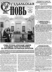 Газета основана 21 марта 1918 г. № 45 (12414) среда, 14 июня 2023 г. Общественно политическая газета 12+ «Рад возможности встретиться с представителями такой замечательной области. Владимир – некогда столица, можно сказать, сердце России. Нельзя сказать, что сейчас эта часть России относится к самым богатым регионам страны, но эти земли имеют огромное историческое, культурное, духовное значение. Поэтому и в моем сознании эта историческая область России занимает особое место, - отметил на встрече Святейший Патриарх Кирилл. - Мы говорим сейчас о традиции, а Церковь – это институт, который традицию всячески поддерживает, и потому уровень церковно-государственных отношений в этих исконно русских регионах имеет, на мой взгляд, очень важное значение и для духовного развития, и вообще для поддержания особого культурного статуса этих земель, которые в свое время были центром жизни нашего народа». Митрополит Владимирский и Суздальский Тихон пригласил Святейшего Владыку принять участие в юбилейных торжествах по случаю 1000-летия Суздаля, которое будет отмечаться в 2024 году, чтобы вместе молитвенно отпраздновать это событие. В ответном слове Губернатор Владимирской области Александр Авдеев, обращаясь к Предстоятелю Русской Православной Церкви, в частности, сказал: «Ваше Святейшество! Вы абсолютно правы: в исторической ретроспективе Владимир и Суздаль играли важнейшую роль при становлении Российского государства, и мы очень отчетливо понимаем, насколько эти исторические параллели прослеживаются именно сейчас. Исторический код, заложенный при Андрее Боголюбском, был значим в течение всей истории Владимира, Суздаля, Мурома, и параллели, которые мы сейчас проводим, наводят на мысль о том, что Русь стояла и стоять будет. Потому что в основу положены именно православные традиции и любовь к Родине. И если вспомнить, как защищали наше Отечество во времена Андрея Боголюбского, во времена Дмитрия Пожарского, то становится ясно, что у нас серьезные корни и никто не сможет нас пошатнуть. Но это накладывает на нас обязательство поддерживать историческую правду, поддерживать внимание и любовь людей к родной земле, к нашим историческим городам. У нас сложились хорошие отношения с владыкой Тихоном, и намечены планы по совместной работе и над объектами культурного наследия, и в образовательной сфере. Так что, если мы действительно будем уделять этому внимание, то будут крепнуть патриотические настроения или, говоря проще, любовь к Родине». В ходе беседы на встрече обсуждались вопросы церковно-государственных отношений в регионе, в том числе вопросы реставрации и восстановления исторических святынь. http://www.eparh33.ru ГЛАВА РЕГИОНА АЛЕКСАНДР АВДЕЕВ И ВЛАДЫКА ТИХОН ВСТРЕТИЛИСЬ СО СВЯТЕЙШИМ ПАТРИАРХОМ КИРИЛЛОМ 8 июня в Патриаршей и Синодальной резиденции в Даниловом ставропигиальном монастыре в Москве состоялась встреча главы Владимирской митрополии митрополита Владимирского и Суздальского Тихона и Губернатора Владимирской области Александра Александровича Авдеева со Святейшим Патриархом Московским и всея Руси Кириллом. Во встрече также принял участие управляющий делами Московской Патриархии митрополит Воскресенский Дионисий. На встрече со Святейшим Патриархом Московским и Всея Руси Кириллом глава региона Александр Авдеев и митрополит Владимирский 