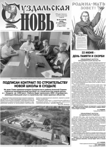 Газета основана 21 марта 1918 г. № 47 (12416) среда, 21 июня 2023 г. Общественно политическая газета 12+ Руководителям компании была показана презентация объекта, а также произведен выезд и осмотр будущей строительной площадки. Глава администрации Суздальского района Алексей Сараев обсудил с подрядчиками вопросы по организации строительства, проектно-архитектурные решения, варианты размещения строителей. Компания приступит к строительным работам в ближайшее время. По контракту срок завершения строительства школы - декабрь 2024 года. Фото М. Авсеенок. Подписан контракт по строительству новой школы в Суздале На днях Глава администрации Суздальского района Алексей Сараев подписал муниципальный контракт по строительству новой школы в г. Суздале на 1200 мест. Работы будет выполнять ООО «Стройцентр», имеющее большой опыт в строительстве таких крупных объектов. Уважаемые жители Владимирской области! 22 июня 1941 года – день, который навсегда останется в памяти нашего народа, как символ несгибаемой воли, самопожертвования и любви к Родине. 82 года назад нацистская Германия вероломно напала на Советский Союз. В эту скорбную дату мы вспоминаем о тех, чьи жизни забрала Великая Отечественная война, говорим слова благодарности ветеранам, бившим врага на фронте, трудившимся в тылу, чтобы обеспечить нашу армию всем необходимым. Против нашей страны были брошены огромные силы: миллионная и хорошо обученная армия, самая передовая военная техника. Третий Рейх подчинил своей воле практически все людские и промышленные ресурсы Европы. Советский народ ответил на нападение всеобщим единением и мужеством. Десятки миллионов людей встали на защиту родной земли и будущего своих детей. Свой вклад в разгром нацизма внесли и наши земляки. Около 300 тысяч жителей Владимирской земли ушли на фронт, вернулись – около половины. Наши героические предки отстояли право жить под мирным небом, но за это заплачена огромная цена – 27 миллионов жизней. Сохранить и передать священную память молодым поколениям – наш главный долг перед ветеранами. Мы никому не дадим переписать историю, будем и впредь рассказывать правду о том, кто сокрушил нацизм. Киевский режим решил предать забвению нашу общую историю: уничтожает памятники воинам-освободителям, сделал нацизм главной идеологией на Украине. И всё это делается при полной экономической и политической поддержке Запада. Чтобы защитить мирных жителей Донбасса от постоянных обстрелов укронацистов, Россия была вынуждена начать специальную военную операцию. Для нас это прямое продолжение Великой Отечественной войны. Тогда поколение победителей избавило мир от коричневой чумы, а сегодня их потомки сражаются за независимость и целостность России. Низкий поклон нашим ветеранам и участникам СВО. Нацизм должен быть уничтожен, победа обязательно будет за нами! А.А.Авдеев, Губернатор области. Уважаемые жители Суздальского района! 22 июня 1941 года - одна из самых памятных и трагических дат в истории России - День памяти и скорби. Этот день стал точкой отсчета испытаниям советского народа на мужество, стойкость, верность Отчизне, на веру в победу, которая была оплачена неимоверной ценой, миллионами жизней и сломанных судеб, сожжёнными дотла городами и сёлами, полностью разрушенной экономикой. Сегодня, в День памяти и скорби, в каждой россий
