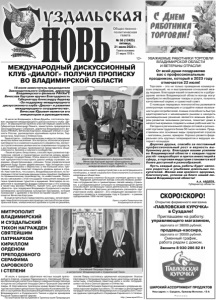 Газета основана 21 марта 1918 г. № 56 (12425) пятница, 21 июля 2023 г. Общественно политическая газета 12+ УВАЖАЕМЫЕ РАБОТНИКИ ТОРГОВЛИ ВЛАДИМИРСКОЙ ОБЛАСТИ И ВЕТЕРАНЫ ОТРАСЛИ! От всей души поздравляю вас с профессиональным праздником, который в 2023 году отмечается 22 июля! Торговля – это не только проведение коммерческих операций, но и выстраивание отношений между людьми. Благодаря вашей отзывчивости и добродушию жители Владимирской области всегда могут приобрести необходимые товары и услуги, получить качественный сервис и грамотный совет. С помощью передовых технологий вы развиваете электронную коммерцию и создаёте новые возможности для потребителей. А ваша способность быстро адаптироваться к меняющимся рынкам и находить инновационные решения является важным фактором развития экономики региона, помогает даже в непростые времена создавать новые рабочие места. Сегодня в региональной сфере оптовой и розничной торговли трудятся более 50 тысяч человек. Представлены все основные виды предприятий отрасли – магазины, рынки, ярмарки. Хорошо развита федеральная сеть крупных гипермаркетов и ведущих интернет-площадок. Дорогие друзья, спасибо за постоянный профессиональный рост и верность выбранному делу. Благодаря вашим усилиям во Владимирской области с каждым годом растёт товарооборот и приток инвестиций в сферу, а торговая индустрия становится всё более доступной и разнообразной. Пусть каждый день работы будет наполнен радостью и улыбками довольных покупателей. Желаю вам крепкого здоровья, благополучия, успехов на благо нашей любимой Владимирской области! А.А. АВДЕЕВ, Губернатор области. МЕЖДУНАРОДНЫЙ ДИСКУССИОННЫЙ КЛУБ «ДИАЛОГ» ПОЛУЧИЛ ПРОПИСКУ ВО ВЛАДИМИРСКОЙ ОБЛАСТИ 18 июля заместитель председателя Законодательного Собрания, директор Владимирского филиала РАНХиГС Вячеслав Картухин вручил Благодарность Губернатору Александру Авдееву «За поддержку международного дискуссионного клуба «Диалог» и развитие международного сотрудничества». Вячеслав Юрьевич является его инициатором и руководителем. 14 июля во Владимире, в Доме Дружбы, состоялось первое заседание международного дискуссионного клуба «Диалог». В мероприятии приняли участие первый заместитель Губернатора Александр Ремига, заместитель председателя Законодательного Собрания, директор Владимирского филиала РАНХиГС Вячеслав Картухин, ведущие учёные и социологи России, руководители крупнейших вузов Китая, Таджикистана, Киргизии и Узбекистана. Тема встречи – глобальные вызовы и меры по повышению качества жизни населения. Эти вопросы, включая искоренение бедности и снижение социального неравенства, являются стратегическими целями многих современных государств, к достижению которых привлекаются представители общественности, бизнеса и научного сообщества. «Такие встречи, безусловно, способствуют развитию партнёрских связей и гуманитарных контактов между дружественными государствами. Очень важно в условиях глобальной турбулентности выстроить диалог между странами, народами, общественниками, учёными. Тогда управленческие решения будут более эффективными. Нам интересен опыт КНР в плане борьбы с бедностью: у них большой опыт, программа, которая помогает повысить уровень жизни в стране. Нам тоже есть, что сказать. Владимирская область по последним стати