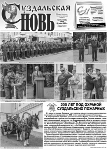Газета основана 21 марта 1918 г. № 57 (12426) среда, 26 июля 2023 г. Общественно политическая газета 12+ Принимаем заказы на изготовление: PR-сопровождение организаций, частных и юридических лиц. Справки по телефонам: 8 (49231) 2-03-34, 2 01 39, 2 08 95 Информационноиздательский центр Суздальского района «Суздаль-Медиа» календарей буклетов книг альбомов листовок флаеров Реклама 205 ЛЕТ ПОД ОХРАНОЙ СУЗДАЛЬСКИХ ПОЖАРНЫХ 21 июля в городе Суздале состоялось торжественное мероприятие, посвящённое празднованию 205-летия местной пожарной команды. В мероприятии приняли участие Алексей Купин, начальник Главного управления МЧС России по Владимирской области, Сергей Мамеев, Главный федеральный инспектор по Владимирской области аппарата полномочного представителя Президента РФ в Центральном федеральном округе, Вячеслав Картухин, заместитель председателя ЗС, Екатерина Проничева, генеральный директор ВСМЗ, Алла Зайкова, директор Суздальского филиала ВСМЗ, Алексей Сараев, Глава администрации Суздальского района, Сергей Сахаров, глава администрации г. Суздаля, личный состав пожарно-спасательных подразделений Суздальского района, ветераны пожарной охраны, представители общественных организаций, журналисты. Торжественное мероприятие открыл генерал-майор внутренней службы Алексей Купин. В поздравительном слове он отметил, что сотрудники Суздальского пожарно-спасательного гарнизона являются достойными преемниками славных традиций пожарной охраны древнего Суздаля. Пожарно-спасательная часть №26 города Суздаля располагается в самом центре уникального исторического города, являясь также его украшением и надёжной защитой от пожаров и других происшествий. Окончание читайте на 3 стр. Личный состав пожарно-спасательной части № 26 г. Суздаля. Алексей Купин (справа) на торжественном построении. Александра Борисова с Днем рождения поздравляет Алексей Купин. Сергей Сахаров вручает медаль «Признание» Сергею Родионову. Выступает зам. председателя ЗС Вячеслав Картухин. Алексей Сараев проводит награждение. Вот таким раньше на место пожара выезжал пожарный обоз.