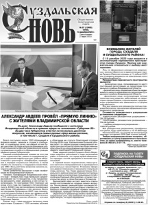 Газета основана 21 марта 1918 г. № 97 (12466) среда, 13 декабря 2023 г. Общественно политическая газета 12+ ВНИМАНИЮ ЖИТЕЛЕЙ ГОРОДА СУЗДАЛЯ И СУЗДАЛЬСКОГО РАЙОНА! С 15 декабря 2023 года вводится в эксплуатацию парковочное пространство города Суздаля. Просим вас внимательнее относиться к выбору мест парковки. Лиц, не оформивших резидентное разрешение, просим обратиться в администрацию города Суздаля (Красная площадь, д.1), кабинет №13 или отправить документы на электронную почту suzdalparking@mail.ru Резидентами парковочного пространства являются: - физические лица, проживающие по месту постоянной регистрации на территории Суздальского района Владимирской области; - физические лица, владеющие объектом недвижимости жилого назначения на территории Суздальского района Владимирской области; - физические лица, использующие личные транспортные средства, работающие на территории города Суздаля, в организациях, предприятиях учреждениях вне зависимости от формы собственности. Все дни недели для резидентов платная парковка бесплатна, при наличии оформленного резидентного разрешения. Стоимость резидентного разрешения установлена следующая: -квартальное резидентное разрешение – 360,00 рублей; -полугодовое резидентное разрешение – 700,00 рублей; - годовое резидентное разрешение – 1000,00 рублей. Все резидентные разрешения, приобретенные ранее, будут действовать с 15.12.2023года. Напоминаем вам, что штраф за неоплаченную парковку составляет 2000 (две тысячи) рублей. Любую информацию можно получить, обратившись в центр парковочного пространства, на сайте suzdalparking.ru. или по телефону 8 (49231) 2-07-16. МБУ города Суздаля «Благоустройство». Всего поступило около 1000 обращений в формате видео, звонков в студию и сообщений в социальных сетях, на каждый из них будет дан ответ. В сборе вопросов принимали участие специалисты Центра управления регионом и управления по работе с обращениями граждан Администрации Губернатора. Самыми злободневными темами на этот раз стали строительство, ремонт и содержание дорог и дорожной инфраструктуры, работа общественного транспорта, газификация, приведение в порядок социальных объектов, а также служба по контракту и поддержка семей бойцов СВО. Большой блок вопросов касался региональной медицины. Также Губернатор рассказал о ходе газификации во Владимирской области. «Уровень газификации Владимирской области ещё 1 января 2023 года превышал среднероссийский на 10 процентов, и мы продолжаем расширять охват деревень и сёл сетью газопроводов. По программе ПАО «Газпром» до конца этого года газ подведут в 52 населённых пункта. В 2024 году запланирована газификация ещё более 100 деревень и сёл региона. Всего по программе Газпрома до 2027 года планируется построить более 2 тысяч км газовых сетей для газификации домовладений и 96 котельных в 313 населённых пунктах области», – уточнил Александр Авдеев. Кроме того, глава региона затронул тему подготовки Суздаля к 1000-летнему юбилею и обретения им статуса Новогодней столицы России 2024 года. Уже выполнен большой объём работ: от реконструкции коммунальной инфраструктуры и благоустройства общественных пространств до оборудования парковочных площадок и новогоднего украшения города. Глава администрации Суздаля Алиса Бирюкова подробно рассказала о ходе выполнения работ и отметила, что город-музей обязательно порадуе