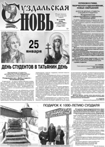 Газета основана 21 марта 1918 г. № 5 (12476) среда, 24 января 2024 г. Общественно политическая газета 12+ Его сделал городу предприниматель-меценат из Киржача Евгений Федоров. С его помощью была построена лестница от Спасо-Евфимиева монастыря до моста на ул. Покровской. Что и говорить — это большое удобство не только для горожан, но и для многочисленных туристов. Теперь по ней можно будет подниматься на высокий берег к Спасо-Евфимиеву монастырю или спускаться от центральной улицы к Покровскому монастырю. Строительством лестницы занимались опытные мастера из артели, созданной самим Евгением Федоровым. Лестница стала своеобразным мостом, который соединил две улицы. В результате его и назвали «Киржачский мост». Его официальное открытие состоялось 20 января. В нем приняли участие Алиса Бирюкова, глава администрации г. Суздаля, Елена Карпова, глава администрации Киржачского района, сам Евгений Федоров, жители и гости Суздаля. «Киржачский мост» несомненно улучшит инфраструктуру города Суздаля, подчеркнет важность сотрудничества между разными территориями области. Алиса Бирюкова выразила Евгению Федорову большую благодарность за «Киржачский мост» от Суздаля и его жителей. Присутствующая на открытии «Киржачского моста» председатель районного общества инвалидов Елена Федоровна Васильева даже написала стихи по этому поводу: Ступенечки широкие и поручни добротные, Лестница-чудесница у стен монастыря. Деревянная красавица на многие года, С видом Покровского монастыря. Фото М. Авсеенок. ПОДАРОК К 1000-ЛЕТИЮ СУЗДАЛЯ УВАЖАЕМЫЕ СТУДЕНТЫ, АСПИРАНТЫ И ПРЕПОДАВАТЕЛИ ВЛАДИМИРСКОЙ ОБЛАСТИ! Поздравляю вас с Днём студента – Татьяниным днём. Студенчество – не просто период обучения профессии, но и время становления личности, формирования принципов и ценностей, определения своего места в жизни. Сегодня в области – более 60 тысяч студентов, в их числе – учащиеся нового вуза – Владимирского филиала Приволжского исследовательского медицинского университета. Не жалея времени и сил, вы добиваетесь успехов в науке, искусстве, спорте. Ежегодно достойно представляете регион на различных олимпиадах, конкурсах, спортивных соревнованиях, чемпионатах профмастерства. Среди вас немало и тех, кто активно участвует в волонтёрском движении – заботится о людях старшего поколения, поддерживает наших военнослужащих и мирных жителей в новых регионах, собирая для них гуманитарную помощь. Огромное спасибо каждому за неравнодушие, энергию, поддержку, желание помогать в это непростое время. Правительство Владимирской области продолжает укреплять промышленный потенциал региона, открываются новые предприятия и производства. В современных условиях одна из главных задач – трудоустройство молодых специалистов. Мы поддерживаем развитие стажировок, практик и других форм обучения студентов. Это помогает ребятам получить не только теоретические знания, но и уже начать работать по специальности, обеспечив себе уверенный старт в карьере. В прошлом году регион стал участником федерального проекта «Профессионалитет». Благодаря грантовой поддержке будут созданы химический и машиностроительный кластеры. Их центрами станут Гусевской стекольный колледж и Ковровская государственная технологическая академия. Новые образовательные пространства, оснащённые самым совре