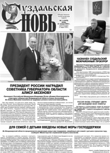 Газета основана 21 марта 1918 г. № 7 (12478) среда, 31 января 2024 г. Общественно политическая газета 12+ Про нее говорят, что пока есть такие люди, будет жить Россия. Алиса Ивановна Аксенова, Герой Труда РФ, заслуженный работник культуры РФ, лауреат двух Государственных премий, кавалер орденов «Знак Почета», Трудового Красного Знамени, Дружбы народов, «За заслуги перед Отечеством», награждена орденом РПЦ Святой равноапостольной княгини Ольги и медалью Святого благоверного князя Даниила Московского, медалью «За заслуги перед Владимирской областью», Почетный доктор Российской академии туризма, Почетный гражданин Владимирской области, города Владимира, города Суздаля, удостоена почетного знака «За заслуги перед музейным сообществом», не считая еще целого ряда званий и наград. Благодаря ее высочайшему профессионализму и незаурядному таланту руководителя, Владимиро-Суздальский музей-заповедник, которому она отдала 50 лет своей жизни, стал одним из крупнейших научно-просветительских учреждений Владимирской области, нашей страны. А имя Алисы Аксеновой стало одним из символов музейного дела России. С высокой оценкой Президентом России ее заслуг Алису Ивановну Аксенову поздравил губернатор Владимирской области Александр Авдеев. Фото из архива А.И. Аксеновой. ПРЕЗИДЕНТ РОССИИ НАГРАДИЛ СОВЕТНИКА ГУБЕРНАТОРА ОБЛАСТИ АЛИСУ АКСЕНОВУ Президент Российской Федерации Владимир Путин объявил Благодарность советнику губернатора Владимирской области Алисе Аксеновой. Ее Алиса Ивановна получила за трудовые успехи и многолетнюю работу. Президент России Владимир Путин и Алиса Аксенова после вручения ей звания Героя Труда РФ. Так, на каждого ребёнка, начиная с третьего, семьи, независимо от своего дохода, получают региональный материнский (семейный) капитал в размере 78758 рублей. Эти средства семьи могут направить на любые цели по своему усмотрению. На данную меру господдержки в областном бюджете на 2024 год предусмотрено 235,8 млн рублей. Семьи по собственному выбору могут получить подарочный набор для новорождённых или единовременную денежную выплату в 10 тыс. рублей. На эту меру поддержки в регионе уже имеют право 2245 семей, в которых с 1 октября 2023 года родились дети. В областном бюджете на эти цели заложено 54 млн рублей. С 1 января 2024 года многодетные семьи с тремя и более детьми, стоящие в очереди на земельный участок, взамен такого участка могут получить сертификат на 250 тыс. рублей, который можно использовать на первоначальный взнос по ипотечным жилищным кредитам, покупку жилья или земельного участка. В 2024 году на это в областном бюджете предусмотрено 87,5 млн рублей. Одним из наиболее эффективных инструментов поддержки семей остаётся государственный социальный контракт. Его средства можно использовать на ведение личного подсобного хозяйства, преодоление трудной жизненной ситуации, поиск работы, организацию индивидуальной предпринимательской деятельности. В текущем году в области планируется заключить 1376 социальных контрактов. На эти цели выделено 288,7 млн рублей, в том числе 254 млн – из федерального бюджета. Пресс-служба Правительства Владимирской области. ДЛЯ СЕМЕЙ С ДЕТЬМИ ВВЕДЕНЫ НОВЫЕ МЕРЫ ГОСПОДДЕРЖКИ Во Владимирской области продолжается реализация новых мер поддержки, введённых для семей с детьми в прошлом году, сообщает Министерство 