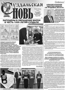 Газета основана 21 марта 1918 г. № 12 (12483) пятница, 16 февраля 2024 г. Общественно политическая газета 12+ Поздравляем! Губернатор Александр Авдеев подписал указ о награждении медалью «За трудовые заслуги» генерального директора акционерного общества «Газпром газораспределение Владимир» и общества с ограниченной ответственностью «Газпром межрегионгаз Владимир», заместителя секретаря Владимирского регионального отделения Партии «ЕДИНАЯ РОССИЯ» Алексея Конышева. Этой региональной награды он удостоен за достигнутые трудовые успехи и многолетнюю добросовестную работу. Алексей Конышев широко известен во Владимирской области как опытный и эффективный управленец. Уроженец города Юрьева-Польского, он несколько лет был избранным главой родного района. С 2010 года трудился в команде администрации Владимирской области – на посту заместителя, а затем первого заместителя Губернатора. С конца 2018 года работает в структурах Газпрома. Имеет государственные награды: медаль ордена «За заслуги перед Отечеством» I степени, медаль ордена «За заслуги перед Отечеством» II степени, медаль «За заслуги в проведении Всероссийской переписи населения», Почетную грамоту Президента Российской Федерации, Благодарственное письмо Президента Российской Федерации, Почетную грамоту Министерства энергетики Российской Федерации. Также имеет другие ведомственные награды, знаки отличия. В 2023 году избран депутатом Законодательного Собрания Владимирской области восьмого созыва по одномандатному избирательному округу № 7, куда входит и Суздальский район. В ЗС работает в составе комитетов: по социальной политике и здравоохранению; по вопросам жилищнокоммунального хозяйства, строительства, транспорта, связи и дорожного хозяйства. 9 февраля 2024 г. Алексей Владимирович Конышев отметил свое 60-летие. АЛЕКСЕЙ КОНЫШЕВ УДОСТОЕН МЕДАЛИ «ЗА ТРУДОВЫЕ ЗАСЛУГИ» АГРОПРОИЗВОДИТЕЛИ ВЛАДИМИРСКОЙ ОБЛАСТИ МОГУТ ПОЛУЧИТЬ КОМПЕНСАЦИЮ ЧАСТИ ЗАТРАТ НА СЕРТИФИКАЦИЮ Мера поддержки разработана в рамках нацпроекта «Международная кооперация и экспорт», инициированного Президентом Владимиром Путиным Стартовал первый приём заявок на участие в программе государственной поддержки, предусматривающей компенсацию части затрат, связанных с сертификацией продукции агропромышленного комплекса на внешних рынках. Процесс подачи заявок проходит через цифровую платформу «Мой экспорт». Их отбор будет проводить Минсельхоз России до 29 февраля. Эта программа – значительный шаг в поддержке отечественных компаний, стремящихся расширить своё присутствие на глобальном аграрном рынке. Она позволяет возместить агропроизводителям от 50 до 90 процентов расходов, понесённых на сертификацию продукции. Её поставка должна быть осуществлена не ранее чем за год до дня подачи заявки, а стоимость должна превышать размер запрашиваемой поддержки не менее чем в 5 раз. Программа предназначена для покрытия затрат на: оценку соответствия продукции АПК международным стандартам; ветеринарно-санитарные и фитосанитарные процедуры; транспортировку, хранение и утилизацию образцов для испытаний; добровольную сертификацию, включая получение сертификатов «халяль» и «кошер». Господдержка распространяется на широкий перечень продукции АПК, включая масложировую отрасль, зерновые, мясную и молочную продукци
