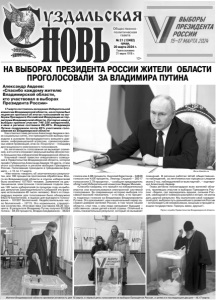 Газета основана 21 марта 1918 г. № 21 (12492) среда, 20 марта 2024 г. Общественно политическая газета 12+ НА ВЫБОРАХ ПРЕЗИДЕНТА РОССИИ ЖИТЕЛИ ОБЛАСТИ ПРОГОЛОСОВАЛИ ЗА ВЛАДИМИРА ПУТИНА Александр Авдеев: «Спасибо каждому жителю Владимирской области, кто участвовал в выборах Президента России» 17 марта состоялось заседание Избирательной комиссии Владимирской области, на котором был подписан протокол об итогах голосования по выборам Президента Российской Федерации на территории Владимирской области. Согласно нему в выборах приняли участие 746 356 избирателей, а явка в регионе составила 69,26%. Владимира Путина поддержали почти 85% участников голосования во Владимирской области Как отметил глава региона Александр Авдеев в своих социальных сетях, эти президентские выборы проходили в условиях беспрецедентного внешнего давления, информационной агрессии, срежиссированных извне провокаций, атак на «Госуслуги» – площадку дистанционного электронного голосования. Но легитимность голосования не вызывает сомнений, а его итоги отражают реальный выбор абсолютного большинства избирателей Владимирской области. Ключевой темой повестки оперативного совещания в Правительстве Владимирской области, которое провёл Губернатор Александр Авдеев 18 марта, стали итоги состоявшихся в регионе выборов Президента России. Голосование проходило в трёхдневном формате – с 15 по 17 марта. «Уже можно говорить об окончательных результатах, все 100 процентов протоколов обработаны. Всего во Владимирской области в список избирателей было включено 1077601 человек. Заявление на дистанционное электронное голосование подали свыше 120 тысяч избирателей (в прошлом году на выборах депутатов Законодательного Собрания эту функцию использовали 40 тысяч человек). Всего в стационарных ящиках для голосования было обнаружено 642379 бюллетеней, в ящиках для выездного голосования – 101307 бюллетеней. Недействительное число бюллетеней – 12715. Это нормальное, стандартное количество. Итоговая явка составила 69,26 процента. В результате Владимир Путин получил 631604 голоса – 84,93 процента, Владислав Даванков – 36322 голоса или 4,88 процента, Николай Харитонов – 34828 голосов или 4,68 процента, Леонид Слуцкий – 28217 голосов или 3,79 процента», – сообщил председатель областной Избирательной комиссии Вадим Минаев. «Спасибо каждому, кто пришёл на избирательный участок или воспользовался электронной системой голосования. За современную историю выборов это самый высокий показатель – и по явке, и по проценту поданных голосов за Владимира Владимировича Путина. Это доказывает: наш национальный лидер заслужил доверие жителей России, в том числе нашей области, стал тем, с кем люди связывают будущее – собственное, своих детей и всей страны. Отличный и очень показательный результат, который не вызывает сомнений. В регионе работал Штаб общественного наблюдения, за легитимностью процесса следили около 3 тыс. наблюдателей от всех партий», – подчеркнул Александр Авдеев. Глава региона поблагодарил всех жителей области, принявших участие в выборах Президента России: «Земля, где зарождалась единая, сильная Россия, свободная от киевских распрей и интриг, не могла дать другой результат. Мы выполнили свой гражданский долг, выбрали путь дальнейшего развития России – хотим видеть её независимым, мощным и процветающим государст