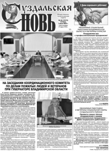 Газета основана 21 марта 1918 г. № 44 (12515) пятница, 7 июня 2024 г. Общественно политическая газета 12+ УВАЖАЕМЫЕ СОЦИАЛЬНЫЕ РАБОТНИКИ ВЛАДИМИРСКОЙ ОБЛАСТИ И ВЕТЕРАНЫ ОТРАСЛИ! Поздравляю вас с профессиональным праздником! Сегодня в социальной отрасли региона трудятся более 5400 специалистов. Ваше благородное призвание требует особой выдержки, терпения, уважения к каждому человеку. Вы – надёжная опора для тысяч земляков: пожилых и ветеранов, детей-сирот и многодетных семей, людей с ограниченными возможностями. Ваша поддержка и неравнодушие способны не только менять жизнь отдельных людей, но и делают всё наше общество более сплочённым и справедливым. Прошедший год был важнейшим для социальной отрасли. Удалось не только выполнить все поставленные задачи, но и наметить новые точки роста. В ГусьХрустальном в рамках национального проекта «Демография» для пожилых и инвалидов открыт новый корпус пансионата. Он рассчитан на 130 мест и оборудован по всем современным стандартам. В нём есть не только жилые комнаты, но и врачебные кабинеты, парикмахерская, компьютерный класс, а также квартиры сопровождаемого проживания. Дополнительные площади помогли сократить очередь в стационар и создать 60 новых рабочих мест. К Семейному многофункциональному центру во Владимире добавились ещё два – в Муроме и Коврове. Сейчас более 1500 семей получают в них всю необходимую помощь в режиме «одного окна». 2024 год объявлен Президентом России Годом семьи. С 1 сентября прошлого года в нашей области материнский капитал стал доступен семьям, в которых родился четвёртый и последующий ребёнок. На особом контроле областного Правительства родители, воспитывающие детей с инвалидностью. Для них запущена региональная информационная система «Территория возможностей» с функцией электронной регистратуры. По-прежнему в центре внимания социальных служб – участники специальной военной операции и их семьи. За каждым закреплён социальный куратор. Всего для наших героев в регионе действует 21 центр помощи. Свою эффективность показал и филиал Госфонда «Защитники Отечества». В приоритете не только оформление необходимых документов, но и медицинская помощь и реабилитация военнослужащих. Дорогие друзья, огромное спасибо за бескорыстное служение, доброе сердце и отзывчивость. Желаю вам крепкого здоровья, неиссякаемой энергии, благополучия, новых успехов в вашем благородном деле! А.А.АВДЕЕВ, Губернатор области. УВАЖАЕМЫЕ РАБОТНИКИ И ВЕТЕРАНЫ СОЦИАЛЬНОЙ СФЕРЫ СУЗДАЛЬСКОГО РАЙОНА! Примите самые тёплые поздравления с вашим профессиональным праздником — Днём социального работника! Быть социальным работником – значит служить на благо других людей: тех, кто оказался в непростой жизненной ситуации и нуждается в особой поддержке. Это не просто профессия, а образ жизни и состояние души. Зачастую именно вы первыми приходите на помощь одиноким пожилым людям, ветеранам, семьям с детьми, землякам с ограниченными возможностями здоровья. Ваш неустанный труд востребован и необходим обществу. Благодаря вашему подходу к работе растёт авторитет службы социальной защиты населения. Благодарим всех сотрудников социальных служб за труд, отзывчивость и чуткие сердца. Желаем вам крепкого здоровья, энергии и благополучия! Пусть те, кому вы ежедневно приходите на помощь, отвечают вам теплом и бл