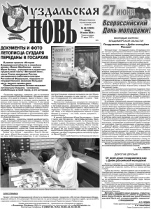 Газета основана 21 марта 1918 г. № 49 (12520) среда, 26 июня 2024 г. Общественно политическая газета 12+ МОЛОДЫЕ ЖИТЕЛИ ВЛАДИМИРСКОЙ ОБЛАСТИ! Поздравляю вас с Днём молодёжи России! Молодые люди – это будущее страны, её надежда и опора. Сегодня во Владимирской области живёт более 300 тысяч ярких, амбициозных и неравнодушных юношей и девушек. Ваши достижения поражают многогранностью и разнообразием. Будь то успехи в учёбе, спорте, науке, искусстве, общественной деятельности. Ваша энергия, любовь к малой родине, трудолюбие – бесценный ресурс, который помогает региону развиваться и достигать новых высот. Создание всех необходимых условий для реализации потенциала и раскрытия талантов каждого ребёнка, воспитание ребят достойными гражданами – одна из целей Правительства Владимирской области. В прошлом году впервые утверждена региональная госпрограмма по молодёжной политике. Системный подход позволил наладить успешную работу с подростками и молодыми людьми по самым разным направлениям. Провели более 30 крупных региональных мероприятий. Помимо традиционных – «Студенческой весны» и «Надежды Земли Владимирской» – появились и новые форматы. Например, Областная школа вожатых, Добрый форум, Слёт студенческих отрядов, фестиваль уличной культуры «Короли улиц» и форум «Регион меняют люди». Продолжаем оказывать всестороннюю поддержку творческим инициативам, молодым учёным и молодым семьям. Лучшие инициативы получают грантовую поддержку. Активно развивается волонтёрское движение. Сейчас в области более 190 тысяч добровольцев. Внедряем современные формы профориентации и возрождаем преемственность трудовых традиций. В условиях специальной военной операции уделяем особое внимание патриотическому воспитанию подрастающего поколения. Только на базе учебно-методического центра «Авангард» проведено более полутора тысяч акций и мероприятий. Не сбавляет обороты и региональное отделение «Движения Первых». Его основа – отличники учёбы и спортсмены, призёры олимпиад и всероссийских конкурсов, лидеры детского и молодёжного самоуправления, всего около 35 тысяч человек. Движение не только помогает ребятам найти своё призвание, но и даёт возможность уже в юном возрасте активно участвовать в жизни страны – заниматься волонтёрством и пропагандой здорового образа жизни, сохранением исторической памяти и культурного наследия, помогать малоимущим и пожилым людям. Дорогие друзья, молодость – это время открытий и свершений, период, когда перед вами открыты все двери, а каждый день приносит новые возможности. Помните, любые достижения начинаются с малого: с первых шагов, первых усилий. Не бойтесь трудностей, ведь именно они делают нас сильнее и мудрее. Верьте в свои силы и никогда не опускайте руки. Уверен, ваши энтузиазм и стремление к переменам обязательно помогут воплотить в жизнь новые проекты и инициативы, которые сделают наше общество и всю Россию ещё более сильными и процветающими. Желаю вам крепкого здоровья, ярких эмоций, успеха в реализации всех намеченных планов. А.А. АВДЕЕВ, Губернатор области. ДОРОГИЕ ДРУЗЬЯ! От всей души поздравляем вас с Днём российской молодёжи! Юность и молодость — это самые прекрасные и романтические периоды в жизни каждого человека. Это время свершений, открытий, полёта, мечты и поиска светлых надежд. Сейчас вы учитес