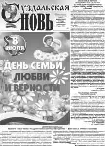 Газета основана 21 марта 1918 г. № 52 (12523) пятница, 5 июля 2024 г. Общественно политическая газета 12+ УВАЖАЕМЫЕ ЖИТЕЛИ ВЛАДИМИРСКОЙ ОБЛАСТИ! От всей души поздравляю вас с Днём семьи, любви и верности в России! Для нашего региона этот праздник имеет особое значение. Древний город Муром – родина покровителей христианского брака, святых Петра и Февронии. Их история стала символом чистой и искренней любви, верности и семейного счастья. Именно в семье закладываются самые важные моральные ориентиры и принципы: взаимоуважение, забота о близких, милосердие, ответственность. Семья – главная опора в жизни каждого человека. Она даёт нам внутреннюю силу преодолевать трудности, верить в лучшее и несмотря ни на что двигаться вперед. На протяжении более чем тысячелетней истории России семейные ценности являются надежной основой нашего общества. Поэтому 2024-й объявлен Президентом Владимиром Путиным Годом семьи. На уровне государства, а также регионального Правительства большое внимание уделяется укреплению института семьи и брака, улучшению жилищных условий, созданию современной инфраструктуры, организации летнего отдыха и семейного досуга. Здесь, на Владимирской земле, мы возрождаем славные традиции крепкой и многодетной семьи. Сейчас в регионе проживает 145 тысяч семей с детьми, из них 18,3 тысячи – многодетные. По сравнению с 2018 годом – рост более чем на 40 процентов. Поэтому будем и дальше оказывать всю необходимую помощь мамам и папам, расширять перечень льгот для многодетных. В этом году на социальную поддержку семей с детьми направим 3,1 миллиарда рублей. Продолжаем развивать областную сеть семейных МФЦ. Более тысячи семей уже получают всю необходимую информацию и услуги в режиме «одного окна» во Владимире, Коврове и Муроме. В этом году новые МФЦ заработают в Александрове и ГусьХрустальном. По-прежнему на особом контроле властей – семьи участников специальной военной операции. Пока наши военнослужащие освобождают Донбасс от неонацистов, отстаивая суверенитет страны, здесь в тылу оказывается вся необходимая адресная помощь их близким. Дорогие друзья, огромное вам спасибо за вклад в процветание региона, укрепление трудовых династий, за воспитание детей в духе добра и патриотизма. Также самые тёплые слова тем семьям, которые прожили вместе не один десяток лет. Ваши союзы – пример молодым поколениям. Благодаря вам мы учимся ценить каждую минуту, проведённую рядом с любимым человеком, находить компромиссы, быть терпимее. Пусть в ваших домах всегда царят мир, гармония, уют, а каждый день будет наполнен счастьем и теплом семейного очага. Желаю вам крепкого здоровья, благополучия и долгих лет совместной жизни. А.А.АВДЕЕВ. Губернатор области. Этот день, отмечаемый в честь святых Петра и Февронии Муромских, стал олицетворением семейного счастья, символом преданности и крепкого союза двух любящих сердец. Наверное, многие из нас слышали слова, что самое главное в жизни каждого человека – это семья. Сначала та, в которой ты рождаешься, а затем, которую создаешь. Для каждого семья – это крепкий дом, где есть любовь и преданность, поддержка и опора, забота и взаимное уважение, уверенность в завтрашнем дне. Россия всегда была крепка семейными традициями. Семья – это главная ценность нашей жизни, это опора, источник нравственности, любви, уважения, залог