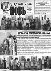 Газета основана 21 марта 1918 г. № 55 (12526) среда, 17 июля 2024 г. Общественно политическая газета 12+ Семья – это дом. Семья – это мир, где царят любовь и преданность. Это радости и печали, которые одни на всех. Это добрые привычки и традиции. А еще - это опора во всех бедах и несчастьях. Такими словами начали праздничную программу ко Дню семьи, любви и верности в районном ЗАГСе ведущие – многодетная мама Оксана Иващук и недавно ставший счастливым молодым отцом Евгений Гусев. В торжественный зал бракосочетаний ЗАГСа в Суздале пригласили семьи разных поколений, которые являются примером стойкости семейных уз. Это супружеские пары: Александр Ефимович и Зоя Ивановна Фадеевы, г. Суздаль (вместе 47 лет), Владимир Анатольевич и Наталья Анатольевна Максимовы, г. Суздаль (вместе 41 год), Мухамматсолий Курбанбаевич и Елена Владимировна Матсапаевы, с. Порецкое (вместе 38 лет), Анатолий Иванович и Галина Валентиновна Мажукины, с. Кистыш (вместе 44 года), Алексей Владимирович и Наталья Александровна Павловы, п. Боголюбово (вместе 25 лет), Илья Сергеевич и Ксения Семеновна Красноперовы, г. Суздаль (вместе 19 лет), Андрей Алексеевич и Анна Владимировна Овчинниковы, с. Ославское (вместе 15 лет), Роман Сергеевич и Мария Евгеньевна Иудины, с. Гавриловское (вместе 8 лет). Почетных гостей тепло приветствовала Татьяна Срибная, первый заместитель Главы администрации района по внутренней и социальной политике. В торжественной обстановке она вручила виновникам торжества медали «За любовь и верность». Среди почетных гостей присутствовали семьи, награжденные в этом году Почетным знаком Губернатора Владимирской области «Родительская слава Земли Владимирской». Это супруги Павловы, воспитывающие 8 детей, и Красноперовы, воспитывающие 6 детей. Напутственные слова в адрес собравшихся прозвучали от отца Михаила, настоятеля храма усекновения главы Иоанна Предтечи в Суздале и главы администрации МО Селецкое Николая Курашкина, тоже имеющих солидный стаж семейной жизни. Они пожелали семьям любви, мира и согласия, и чтобы их домашний очаг навсегда сохранил свое тепло. Добрую, по-настоящему семейную атмосферу праздника поддерживали артисты межпоселенческого методического культурно-досугового центра с. Новое: Вера Фомина, Александр Катков, ансамбль «Вишенье»; солистка Дома культуры п. Боголюбово Оксана Иващук. Глядя на присутствующие в зале счастливые семейные пары, искренне веришь, что лучшее из богатств – семья, когда в глазах супругов светится счастье, в доме господствует уют, в отношениях – лад, а души согреваются взаимной любовью. Галина ФИРСОВА. Фото автора. КОГДА ДУШИ СОГРЕВАЮТСЯ ЛЮБОВЬЮ 8 июля мы отметили российский праздник – День семьи, любви и верности, который приурочен к православному празднику в память святых благоверных Петра и Февронии Муромских, считающихся покровителями семьи и брака. В Суздале и Суздальском районе немало семей, которых связывают крепкие, проверенные временем, семейные узы. Тепло, нежность и любовь, которые дает нам семья, не могут дать ни деньги, ни карьера. УПРАВЛЕНИЕ ФЕДЕРАЛЬНОЙ НАЛОГОВОЙ СЛУЖБЫ ПО ВЛАДИМИРСКОЙ ОБЛАСТИ НАПОМИНАЕТ С 2023 года в соответствии с пунктом 9 статьи 58 Налогового кодекса Российской Федерации введена обязанность для налогоплательщиков по представлению в налоговый орган Уведомлений по имущественному налогу организ