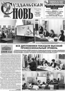 Газета основана 21 марта 1918 г. № 56 (12527) пятница, 19 июля 2024 г. Общественно политическая газета 12+ Традиционно членами Государственной экзаменационной комиссии стали сотрудники ведущих реставрационных центров страны (Государственного научноисследовательского института реставрации и Всероссийского художественного научно-реставрационного центра имени академика И.Э.Грабаря), а также специалисты Владимиро-Суздальского музея-заповедника. Приказом Министерства культуры РФ председателем ГЭК в очередной раз был утвержден Д.Б. Антонов - директор Государственного научно-исследовательского института реставрации (ГОСНИИР). Выпускники на защиту дипломных работ представили реставрационные работы произведений декоративно-прикладного и изобразительного искусства из Ярославского художественного музея, Егорьевского историко-художественного музея, Тверского государственного объединенного музея, Угличского государственного историко-архитектурного и художественного музея, а также из Свято-Успенского Космин мужского монастыря (с. Небылое, Владимирская область) и Свято-Покровского женского монастыря (г. Суздаль). Нескрываемый профессиональный интерес вызвала у членов ГЭК реставрация сложных музейных экспонатов, представленных на защите, из Тверского государственного объединенного музея – мундирного платья лейбл-гвардии конного полка (18 век) и реставрация платья Екатерины II (18 век), а также предметы мебели из Ярославского художественного музея. «По предложению председателя ГЭК Д.Б. Антонова, - говорит М.П. Виткина, директор Суздальского филиала СПбГИК, - многим выпускникам юбилейного выпуска-24 (в этом году Суздальский филиал СПбГИК отмечает свое 45-летие) кроме отличных оценок за сложные дипломные работы были выданы рекомендации в Аттестационную комиссию Министерства культуры на присвоение реставрационной категории. Впервые в истории учебного заведения!» Председатель и члены ГЭК отметили, что все дипломники показали достаточно высокий профессиональный уровень и пожелали им дальнейшего профессионального роста, успешной самореализации, а также сил на долгое и верное служение своему призванию – делу сохранения нашего культурного наследия! И.ПЕТРОВА. Фото предоставлены СПбГИК. ВСЕ ДИПЛОМНИКИ ПОКАЗАЛИ ВЫСОКИЙ ПРОФЕССИОНАЛЬНЫЙ УРОВЕНЬ 45 лет В Суздальском филиале СПбГИК завершилась Государственная итоговая аттестация. Квалификацию художник-реставратор получили 33 выпускника на специализациях «Реставрация, консервация произведений станковой живописи», «Реставрация, консервация произведений ДПИ из текстиля», «Реставрация, консервация произведений ДПИ из керамики», «Реставрация, консервация произведений ДПИ из дерева». Справки по телефону 8 (49231) 2-08-95. ПОДПИСКА НА ГАЗЕТУ «СУЗДАЛЬСКАЯ НОВЬ» Реклама Защита дипломных работ в Суздальском филиале СПбГИК. Члены государственной экзаменационной комиссии. В центре председатель ГЭК Д.Б. Антонов, дипломников приветствует директор Суздальского филиала СПбГИК М.П. Виткина. Обсуждение дипломных работ членами ГЭК. Выпускники представили на защиту очень интересные дипломные работы. С ЛЮБОГО ЧИСЛА, ЛЮБОГО МЕСЯЦА ОФОРМИТЬ ПОДПИСКУ МОЖНО В РЕДАКЦИИ по адресу: г. Суздаль, Красная пл., д.1, каб.12,18. СТОИМОСТЬ ПОДПИСКИ НА 1 МЕСЯЦ: с доставкой на дом - 72 рубля (г. Суздаль, не менее 5 экземпляров); 