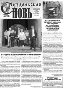 Газета основана 21 марта 1918 г. № 57 (12528) среда, 24 июля 2024 г. Общественно политическая газета 12+ ПРИЕМ ГРАЖДАН ПО ЛИЧНЫМ ВОПРОСАМ 26 июля 2024 года в администрации Суздальского района (кабинет № 38, 3 этаж) в период с 10:00 до 11:00 прием граждан по личным вопросам проводит первый заместитель Губернатора Владимирской области Ремига Александр Александрович. На прием можно записаться предварительно по телефонам 8 (49231) 2-13-45, 2-30-09. Губернатор Владимирской области Александр Авдеев и Министр культуры РФ Ольга Любимова в ходе рабочей встречи обсудили юбилейные мероприятия в Суздале, реализацию нацпроекта «Культура» и проект археологического парка «Мжарские курганы». 19 июля в Суздале, на площадке Спасо-Евфимиева монастыря, состоялась рабочая встреча Министра культуры РФ Ольги Любимовой, Губернатора Александра Авдеева, директора Владимиро-Суздальского музея-заповедника Екатерины Проничевой и её коллеги Олега Рыжкова. Стороны обсудили состоявшиеся и предстоящие масштабные культурные события 1000-летнего юбилея города-музея, развитие Владимира и Суздаля, отдельных объектов, в том числе идею создания в Суздале археологического парка «Мжарские курганы». Кроме того, подвели предварительные итоги реализации нацпроекта «Культура». За 5 лет он позволил добиться масштабной перезагрузки региональной отрасли. С 2019 года построено и капитально отремонтировано 46 учреждений культуры (достраиваются ДК в посёлке Галицы Гороховецкого района и Центр культурного развития в Вязниках, проводится капремонт в 6 домах культуры и 2 детских школах искусств); 60 организаций культуры получили современное оборудование; переоснащено техникой 11 музеев; 30 школ искусств и областной музыкальный колледж получили комплекты новых инструментов, оборудования и спецлитературы; создано 20 модельных библиотек, в этом году откроется ещё одна – в посёлке Малыгино Ковровского района. С преображением учреждений культуры в регионе повышается и интерес к ним. Так, с 2022 по 2023 год их посещаемость увеличилась минимум на 1 млн человек (с 19 млн до более 20 млн). Только в последние две недели июля в проект «Пушкинская карта» в регионе заведено свыше 520 событий. В рамках нацпроекта в области реализуются крупные творческие мероприятия, собирающие сотни тысяч посетителей. В этом году впервые состоялся фестиваль «Симфоническая экспедиция», прошёл традиционный фестиваль Дениса Мацуева «Alma Mater: «Новые имена в Суздале», в августе состоятся фестиваль духовной музыки и колокольных звонов «Лето Господне», финал совместного культурно-образовательного проекта Центра классической музыки и областного музыкального колледжа «Владимирская оперная академия» специально к 1000-летию Суздаля. Минкультуры России профинансировало разработку научно-проектной документации для реставрации объектов Ризоположенского монастыря в Суздале и Успенского собора Княгинина монастыря во Владимире, обеспечило реставрацию колокольни Кремля в Суздале и восстановление Золотых ворот. «От лица жителей области говорю Ольге Борисовне и её коллегам большое спасибо. Эти шедевры архитектуры много для нас значат. В них – ключи к истории Руси, её духовности, гордость и слава Владимирской области и во многом основа её культурного и туристического потенциала. За пятилетку мы очень многого добились и не намерены успокаиваться н
