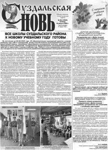 Газета основана 21 марта 1918 г. № 68 (12539) пятница, 30 августа 2024 г. Общественно политическая газета 12+ ДОРОГИЕ ШКОЛЬНИКИ, СТУДЕНТЫ, ПЕДАГОГИ И РОДИТЕЛИ ВЛАДИМИРСКОЙ ОБЛАСТИ! Поздравляю вас с Днём знаний и началом нового учебного года! Этот день особенно значим для тех, кто впервые садится за парты. В этом году это более 14 тысяч ребят. Первый школьный звонок, первые учителя и первые уроки – эти воспоминания безусловно останутся с вами на всю жизнь. Пусть школа станет для вас вторым домом, где вы обретёте верных друзей, мудрых наставников, познаете интересные науки и найдёте ответы на все вопросы. Помните, что учёба – это прекрасная возможность развить свои таланты и способности. Исследуйте, творите, задавайте вопросы и не бойтесь ошибаться! Особые слова признательности нашим уважаемым педагогам. Вы вкладываете душу и сердце в образование и воспитание подрастающего поколения, стремитесь вырастить их достойными гражданами страны. Каждый урок, каждая минута общения с детьми – ценнейший вклад в развитие региона и будущее всей страны. Огромное спасибо вам за самоотверженность, доброту и верность профессии. В области действуют 929 образовательных организаций, в которых учатся свыше 240 тысяч человек. Мы стремимся создавать все необходимые условия для качественного обучения и всестороннего развития каждого ребёнка. Капитальный ремонт школ, оснащение их современным оборудованием, всё это становится возможным в том числе благодаря участию региона в нацпроекте «Образование». С помощью федерального проекта «Современная школа» в селе Сновицы Суздальского района построена школа на 240 мест, в Александрове открыт детский технопарк «Кванториум», в Лакинске реконструирована школа на 500 мест. Также в 30 школах региона обновлена материальнотехническая база. Дорогие друзья, пусть грядущий учебный год будет полон ярких событий, побед и достижений. Желаю всем крепкого здоровья, энергии и благополучия. А.А. АВДЕЕВ, Губернатор области. ДОРОГИЕ ШКОЛЬНИКИ И СТУДЕНТЫ! УВАЖАЕМЫЕ ПЕДАГОГИ И РОДИТЕЛИ! Примите самые искренние поздравления с Днём знаний – праздником, который все мы отмечаем с особыми чувствами! Это один из самых светлых и добрых праздников, объединяющий все поколения, символ начинаний, перспектив и новых возможностей. День знаний - общий праздник, который одинаково важен как для детей, так и для взрослых. И это неудивительно, ведь наш путь к успеху начинается в школе. Здесь мы познаём мир, открываем себя, находим настоящих друзей и встречаем учителей, которые становятся для нас примером во всём. Особых поздравлений в этот день заслуживают первоклассники – для них это первое знакомство со школой и первой учительницей. А для старшеклассников-выпускников – начало года, который станет определяющим в выборе профессии и дальнейшего жизненного пути. С особой теплотой мы обращаемся к работникам образования. Ваш труд бесценен, ведь именно он лежит в основе формирования личности и гражданской позиции молодого поколения. От вас во многом зависит будущее нашего района, региона и страны. Дорогие ребята! Пусть этот день станет началом увлекательного путешествия в мир знаний. Желаем вам сил и энергии, чтобы преодолевать трудности, мудрости и настойчивости, чтобы достичь своих целей! А.П. САРАЕВ, Глава администрации Суздальского района. В.В. КИРИЛЛОВ, Г