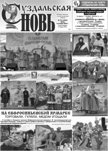 Газета основана 21 марта 1918 г. № 79 (12550) среда, 9 октября 2024 г. Общественно политическая газета 12+ НА ЕВФРОСИНЬЕВСКОЙ ЯРМАРКЕ ТОРГОВАЛИ, ГУЛЯЛИ, МЕДОМ УГОЩАЛИ 5 октября в Суздале прошла Евфросиньевская ярмарка. В восемнадцатый раз Торговая площадь, словно в старые добрые времена, превратилась в осенний базар, наполненный щедрыми дарами (подробности читайте на 2 стр.). Справки по телефону 8 (49231) 2-08-95. ПОДПИСКА НА ГАЗЕТУ «СУЗДАЛЬСКАЯ НОВЬ» Реклама С ЛЮБОГО ЧИСЛА, ЛЮБОГО МЕСЯЦА ОФОРМИТЬ ПОДПИСКУ МОЖНО В РЕДАКЦИИ по адресу: г. Суздаль, Красная пл., д.1, каб.12,18. СТОИМОСТЬ ПОДПИСКИ НА 1 МЕСЯЦ: с доставкой на дом - 72 рубля (г. Суздаль, не менее 5 экземпляров); по району - 77 рублей; с получением в редакции - 67 рублей. Фоторепортаж Марины Авсеенок.