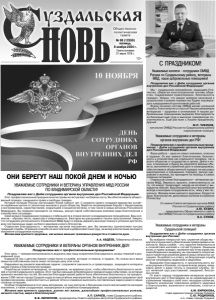 Газета основана 21 марта 1918 г. № 88 (12559) пятница, 8 ноября 2024 г. Общественно политическая газета 12+ УВАЖАЕМЫЕ СОТРУДНИКИ И ВЕТЕРАНЫ УПРАВЛЕНИЯ МВД РОССИИ ПО ВЛАДИМИРСКОЙ ОБЛАСТИ! Поздравляю вас с Днём сотрудника органов внутренних дел Российской Федерации. Этот профессиональный праздник многие привычно встречают на боевом посту. Вы обеспечиваете общественный порядок, защищаете права и свободы граждан. История полиции России насчитывает более трёхсот лет. С момента своего создания ведомство остаётся надёжным щитом от различных вызовов и угроз обществу. Ведётся непримиримая борьба с бандитизмом и экстремизмом, наркоторговлей, коррупцией и мошенничеством, в том числе в новых регионах Российской Федерации. Вы первыми приходите на помощь, рискуя порой собственными жизнями ради благополучия и спокойствия сограждан. Свой вклад в поддержание порядка и стабильности в стране вносят и владимирские полицейские. Ваш коллектив – образец чести, мужества и оперативности. Ежегодно вы раскрываете тысячи преступлений. Уверен, что сотрудники регионального Управления МВД будут и впредь держать высокую планку и успешно достигать всех поставленных задач на благо земляков и всего Отечества. Отдельная благодарность – ветеранам органов внутренних дел. Вы являетесь хранителями лучших традиций службы. Огромное спасибо за многолетний и добросовестный труд, за вклад в воспитание молодого поколения сотрудников полиции. Желаю вам крепкого здоровья, как можно меньше тревожных дежурств и стойкости духа. А.А. АВДЕЕВ, Губернатор области. ОНИ БЕРЕГУТ НАШ ПОКОЙ ДНЕМ И НОЧЬЮ С ПРАЗДНИКОМ! УВАЖАЕМЫЕ СОТРУДНИКИ И ВЕТЕРАНЫ ОРГАНОВ ВНУТРЕННИХ ДЕЛ! Поздравляем вас с профессиональным праздником! Этот день — прекрасная возможность выразить вам нашу искреннюю благодарность за ваш тяжелый и рискованный труд. Каждый из нас с детства помнит слова песни о службе, которая «и опасна, и трудна». Но только вы и ваши семьи на собственном опыте знают истинную цену этих слов. Ежедневно вы решаете важнейшие задачи: сохраняете законность и правопорядок, защищаете интересы нашей страны и благополучие граждан. Порой вы не знаете ни выходных, ни праздников, ни времени суток, чтобы обеспечить безопасность жителей и гостей Суздальского района. Этот год был насыщен юбилейными и праздничными событиями, на которые приехало множество гостей. Во многом благодаря вашей работе была обеспечена безопасность на праздновании 1000-летия города Суздаля и других масштабных мероприятиях. Вы ещё раз продемонстрировали свой профессионализм, компетентность и умение чётко и слаженно выполнять поставленные задачи даже в самых сложных ситуациях. Особые поздравления в этот день ветеранам, на чьих заслугах и бесценном опыте воспитывается молодое поколение, а также сотрудникам, находящимся в служебных командировках. Желаем вам крепкого здоровья, долгих лет жизни, дальнейших профессиональных успехов, личного счастья, мира и благополучия! А.П. САРАЕВ, глава Суздальского района. В.В. КИРИЛЛОВ, председатель Совета народных депутатов Суздальского района. Уважаемые коллеги - сотрудники ОМВД России по Суздальскому району, ветераны МВД, наши добровольные помощники! Поздравляю вас с Днём сотрудника органов внутренних дел Российской Федерации! Мы – суздальские полицейские, защищаем Отечество, обер
