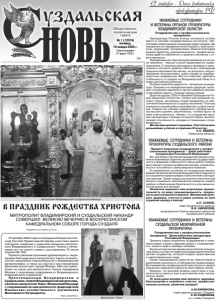 общественно политическая газета УЗДАЛЬСКАЯ 2 № 1 (12574) пятница, 10 января 2025 г. ПРАЗДНИК. СОБЫТИЯ. ЛЮДИ В ПРАЗДНИК РОЖДЕСТВА ХРИСТОВА 7 января, в праздник Рождества Господа Бога и Спаса нашего Иисуса Христа, митрополит Владимирский и Суздальский Никандр возглавил великую вечерню в Воскресенском кафедральном соборе города Суздаля. Его Высокопреосвященству сослужили: викарий Владимирской епархии епископ Ковровский Стефан, секретарь Владимирского епархиального управления и благочинный города Суздаля иеромонах Арсений (Смирнов), эконом Владимирской епархии, настоятель Воскресенского кафедрального собора города Суздаля иеромонах Иларион (Копытин), ключарь Успенского кафедрального собора иеромонах Андрей (Горюнов), наместник Богородице-Рождественского монастыря Владимира игумен Кирилл (Сурков), настоятели и клирики храмов епархии. В храме митрополита Никандра встречала глава администрации города Суздаля Алиса Михайловна Бирюкова. Она преподнесла владыке букет цветов. Песнопения великой вечерни исполнил хор Спасо-Евфимиевого монастыря. В завершении богослужения митрополит Никандр обратился к духовенству и молящимся с архипастырским словом. РОЖДЕСТВЕНСКОЕ ОБРАЩЕНИЕ МИТРОПОЛИТА ВЛАДИМИРСКОГО И СУЗДАЛЬСКОГО НИКАНДРА ДОРОГИЕ ЖИТЕЛИ ВЛАДИМИРСКОЙ ОБЛАСТИ, БРАТЬЯ И СЕСТРЫ! Сердечно поздравляю вас с великим и мироспасительным праздником Рождества Христова! Пусть это Торжество озарит вашу жизнь сиянием Божественного света. Желаю всем вам духовной радости, крепости сил и преизобильной благодати в предстоящем году. Пусть слова Ангела, возвещавшего пастухам о Рождестве Христовом, звучат и для нас: “…не бойтесь; я возвещаю вам великую радость, которая будет всем людям: ибо ныне родился вам в городе Давидовом Спаситель, Который есть Христос Господь” (Лк. 2:10-11). Искренне желаю, чтобы эта радость, принесенная в мир Богомладенцем Христом, наполнила сегодня наши сердца особой благодатью и любовью! С ПРАЗДНИКОМ! Митрополит Владимирский и Суздальский Никандр. А в ночь с 6 на 7 января 2025 года, в праздник Рождества Христова, митрополит Владимирский и Суздальский Никандр совершил праздничную Божественную литургию в Свято-Успенском Кафедральном соборе г. Владимира. За Литургией главе Владимирской митрополии сослужили: митрополит Тихон, викарий Владимирской епархии епископ Ковровский Стефан, секретарь Владимирского епархиального управления иеромонах Арсений (Смирнов), ключарь Успенского кафедрального собора иеромонах Андрей (Горюнов) и священнослужители собора. Праздничные богослужебные песнопения исполнил архиерейских хор Успенского кафедрального собора под управлением регента Татьяны Оганян. В храме молились гости города Владимира, многочисленные прихожане и паломники. По запричастном стихе было оглашено Рождественское послание Святейшего Патриарха Московского и всея Руси Кирилла архипастырям, пастырям, диаконам, монашествующим и всем верным чадам Русской Православной Церкви. По окончании Литургии было совершено славление празднику. В завершении митрополит Никандр обратился к верующим с архипастырским словом и поздравил духовенство и молящихся с праздником Рождества Христова. https://eparh33.ru Цветы владыке Никандру преподносит Алиса Бирюкова. На праздничном богослужении. Владыка Никандр и епископ Ковровский Стефан. В