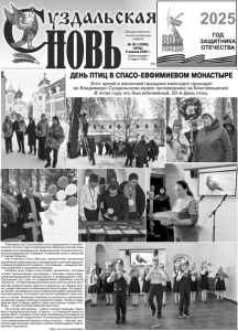 Газета основана 21 марта 1918 г. № 26 (12599) среда, 9 апреля 2025 г. Общественно политическая газета 12+ Главными участниками Дня птиц традиционно становятся дети. В этом году в мероприятии приняли участие семь команд: из Стародворской, Новосельской, Сокольской, Новоалександровской, Садовой, Сновицкой школ и школы № 2 города Суздаля. Как отметила Ольга Васина, заместитель начальника управления образования и молодежной политики администрации Суздальского района, эти команды – самые активные любители и хранители природы. Особую роль в Дне птиц играют дошколята, которые готовят фольклорную программу с песнями-закличками, символизирующими приход весны и возвращение птиц. Последние три года их поддерживает музейная группа «КрАсота». В ходе праздника участники смогли узнать множество увлекательных фактов о пернатых: их образе жизни, среде обитания и значении для экосистемы. Сотрудники музея-заповедника подготовили для ребят увлекательные викторины, в которых они могли проверить свои знания о птицах. Команды отвечали на вопросы и сражались за звание лучших знатоков пернатого мира. Также в преддверии Дня Победы ребята сами изготовили символ Победы – голубя на Георгиевской ленточке. По итогам викторины 1 место заняли команды Садовой и Новосельской школ, 3 место – у Сновицкой школы и школы № 2 г. Суздаля. Участники праздника установили на деревьях новые скворечники. Кульминацией мероприятия стал символический выпуск птицы на волю – обычай, воспетый еще великим русским поэтом Александром Сергеевичем Пушкиным. https://vk.com/suzdalregion ДЕНЬ ПТИЦ В СПАСО-ЕВФИМИЕВОМ МОНАСТЫРЕ Этот яркий и весенний праздник ежегодно проходит во Владимиро-Суздальском музее-заповеднике на Благовещение. В этом году это был юбилейный, 20-й День птиц.