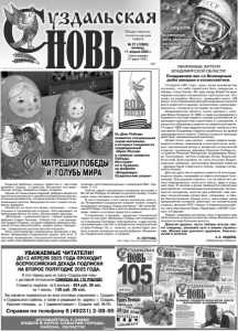Газета основана 21 марта 1918 г. № 27 (12600) пятница, 11 апреля 2025 г. Общественно политическая газета 12+ УВАЖАЕМЫЕ ЖИТЕЛИ ВЛАДИМИРСКОЙ ОБЛАСТИ! Поздравляю вас со Всемирным днём авиации и космонавтики. 12 апреля 1961 года – день, когда человечество осознало, что небо перестало быть пределом, а звёзды стали ближе. 64 года назад Юрий Гагарин первым покорил космическое пространство. Его полёт на корабле «Восток», длившийся всего 108 минут, стал отражением высоких моральных качеств всего советского народа: патриотизма, самоотверженности, готовности на подвиг во имя Родины. Владимирская область тесно связана с именем Юрия Гагарина. В 1960-х годах на аэродроме в Киржаче в составе первого отряда космонавтов он проходил парашютную подготовку. К сожалению, и жизнь его оборвалась именно на киржачской земле. 27 марта 1968 года первый космонавт планеты и его наставник Владимир Серёгин разбились во время тренировочного полёта. Сейчас на месте трагедии действует мемориальный комплекс. Кроме этого, наш регион – малая родина выдающихся учёных, инженеров и конструкторов, внесших неоценимый вклад в развитие космической отрасли: уроженец деревни Орехово Собинского района Николай Жуковский, владимирец Михаил Тихонравов, житель Коврова Игорь Яцунский, Анатолий Благонравов из села Аньково Владимирской губернии, вязниковец Валерий Кубасов – дважды Герой Советского Союза, трижды летавший в космос. Для нас дело чести хранить память об этих выдающихся людях, передавая эстафету молодым поколениям. Они должны помнить, что на свете нет ничего невозможного, если есть мечта, вера и упорный труд. В школах и вузах проводятся различные мероприятия, посвящённые космонавтике, организуются экскурсии, многие уже работают над своими техническими проектами, например, в сфере беспилотников. Кроме этого, некоторые наши предприятия успешно работают на космическую отрасль: филиал НПО «Наука» в Киржачском районе, конструкторское бюро «Арматура» и ВНИИ «Сигнал» в Коврове. Уверен, опираясь на знания, опыт и прогресс нам обязательно откроются многие тайны Вселенной и покорятся ещё большие высоты. Дорогие друзья, пусть звёзды всегда светят каждому, указывая путь к новым горизонтам. Желаю вам крепкого здоровья, благополучия и успехов. А.А. АВДЕЕВ, Губернатор области. 12 апреля Всемирный день авиации и космонавтики Изделия фабрики хорошо известны и жителям древнего города, и туристам. Выпускает она деревянную посуду, предметы утвари, игрушки. Одним из самых ярких изделий фабрики являются расписные матрешки с самобытной яркой росписью с ягодным орнаментом, которые всегда пользуются неизменным спросом. Выпускаются они с самого основания фабрики. Несмотря на простоту форм, матрешка – очень сложная в производстве игрушка. Изготавливают их преимущественно из липы, расписывают вручную. «Матрешка – уникальная кукла,- говорит директор фабрики Софья Чернова.- Сейчас она – как маленький символ Родины, которая победила фашизм в Великой Отечественной войне, символ семьи. Прекрасная , традиционно русская детская игрушка». Опыт изготовления специальных матрешек у фабрики «Владимиро-Суздальские узоры» уже есть. С началом проведения специальной военной операции работники фабрики выразили свою гражданскую позицию, изготовив матрешек с символами СВО - буквами Z и V. Сейчас серию специальных 