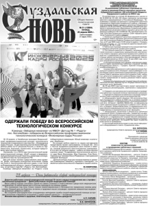Газета основана 21 марта 1918 г. № 31 (12604) пятница, 25 апреля 2025 г. Общественно политическая газета 12+ СОВЕТ НАРОДНЫХ ДЕПУТАТОВ СУЗДАЛЬСКОГО РАЙОНА РЕШЕНИЕ от 23.04.2025 № 44 О назначении публичных слушаний по проекту решения Совета народных депутатов Суздальского района «Об исполнении бюджета Суздальского района за 2024 год» В соответствии со статьей 28 Федерального закона от 06.10.2003 № 131-ФЗ «Об общих принципах организации местного самоуправления в Российской Федерации», Положением о порядке организации и проведения публичных слушаний на территории Суздальского района, утвержденным решением Совета народных депутатов Суздальского района от 28.08.2019 № 63, Положением о бюджетном процессе в муниципальном образовании Суздальский район, утвержденным решением Совета народных депутатов Суздальского района от 28.12.2022 № 135, руководствуясь статьей 16 Устава Суздальского района, Совет народных депутатов Суздальского района решил: 1. Назначить проведение публичных слушаний по проекту решения Совета народных депутатов Суздальского района «Об исполнении бюджета Суздальского района за 2024 год» на 21 мая 2025 года в 10.00 часов по адресу: г. Суздаль, Красная площадь, д.1, зал заседаний администрации района (кабинет № 18), 2 этаж. 2. Публичные слушания проводятся по инициативе Совета народных депутатов Суздальского района. 3. Постоянной комиссии по бюджету, экономике, налоговой политике и управлению муниципальной собственностью Совета народных депутатов Суздальского района совместно с управлением по экономике и финансам администрации района организовать сбор рекомендаций, замечаний и предложений до 24.00 часов 18 мая 2025 года, которые направляются жителями района: - в письменной форме или в форме электронного документа в адрес организатора публичных слушаний: 601293, Владимирская область, г. Суздаль, Красная площадь, д.1, sovet@suzdalregion.ru; - посредством официального сайта администрации Суздальского района в сети «Интернет» www.suzdalregion.ru через Форму подачи замечаний и предложений по проекту решения Совета народных депутатов в разделе Совет народных депутатов Суздальского района/Форма подачи замечаний и предложений по проекту решения Совета народных депутатов; - посредством федеральной государственной информационной системы «Единый портал государственных и муниципальных услуг (функций)». До 20 мая 2025 года подготовить проект заключения по поступившим рекомендациям, замечаниям и предложениям. 4. Утвердить состав комиссии по организации и проведению публичных слушаний согласно приложению к решению. 5. Определить ведущим на публичных слушаниях председателя Совета народных депутатов Кириллова В.В. 6. Обнародовать проект решения «Об исполнении бюджета Суздальского района за 2024 год» в сетевом издании «Суздаль-Медиа» в информационно-телекоммуникационной сети «Интернет» (SUZDAL-MEDIA.RU), на официальном сайте администрации Суздальского района в сети «Интернет» в разделе «Нормативная база» и в федеральной государственной информационной системе «Единый портал государственных и муниципальных услуг (функций)». 7. Обнародовать заключение о результатах публичных слушаний в газете «Суздальская новь», разместить на официальном сайте администрации Суздальского района в сети «Интернет» и в федеральной государственной информационной системе «Единый портал государственных и муниц